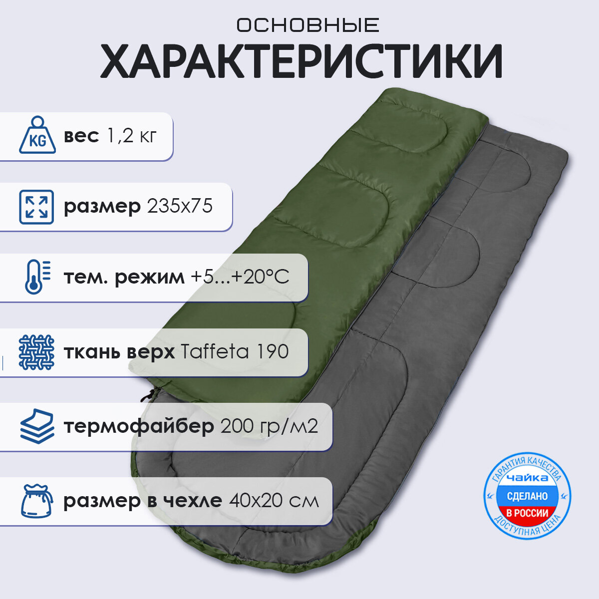 Спальный мешок Чайка СП-2, туристический, синтетический наполнитель, хаки информация: