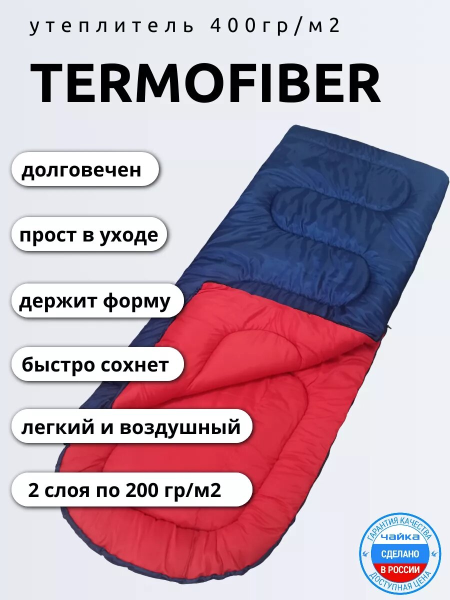 Спальный мешок Чайка, зимний, термофайбер, с подголовником, синий/красный информация: