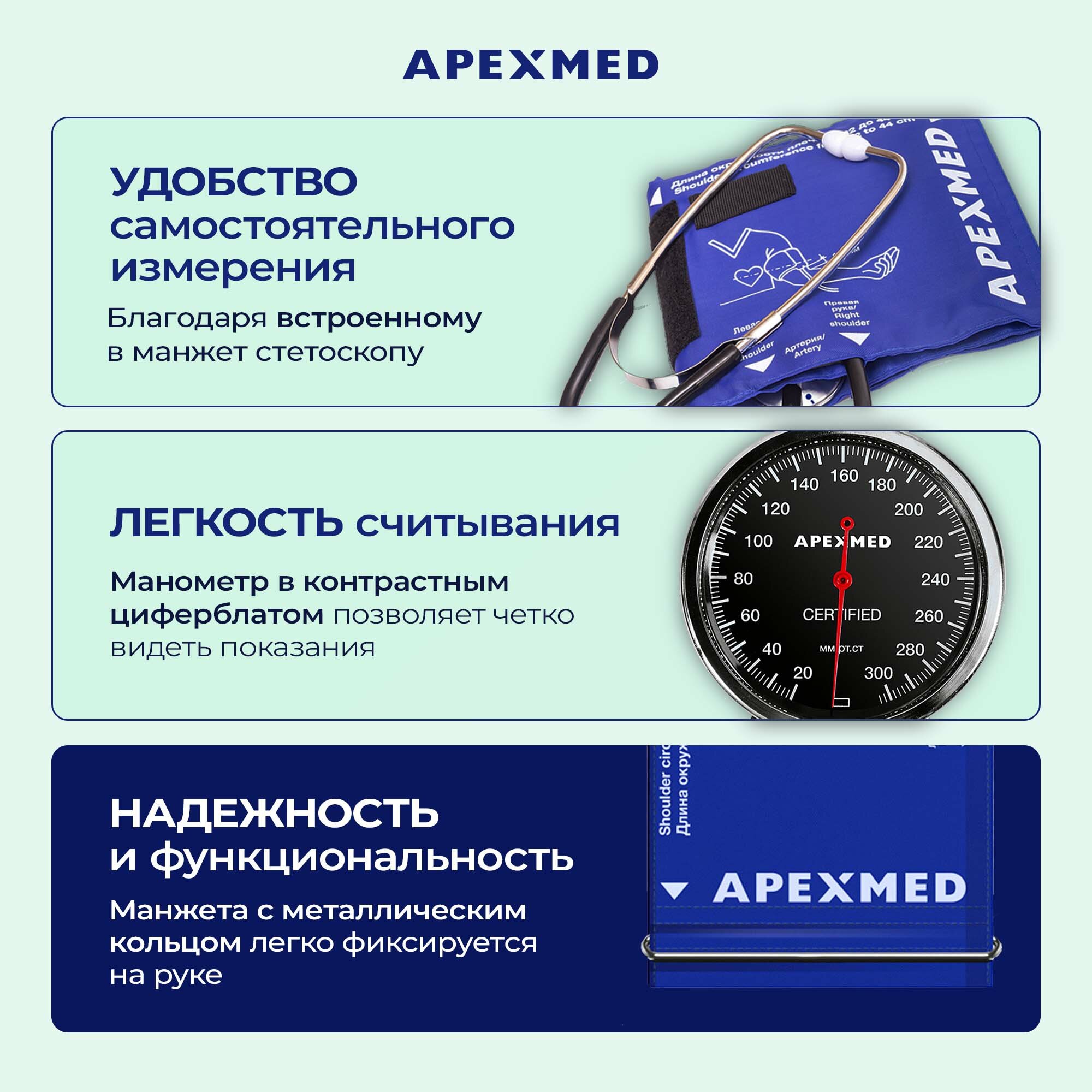 Тонометр механический Apexmed АТ-12 с большой манжетой, 32-44 см, измеритель давления информация: