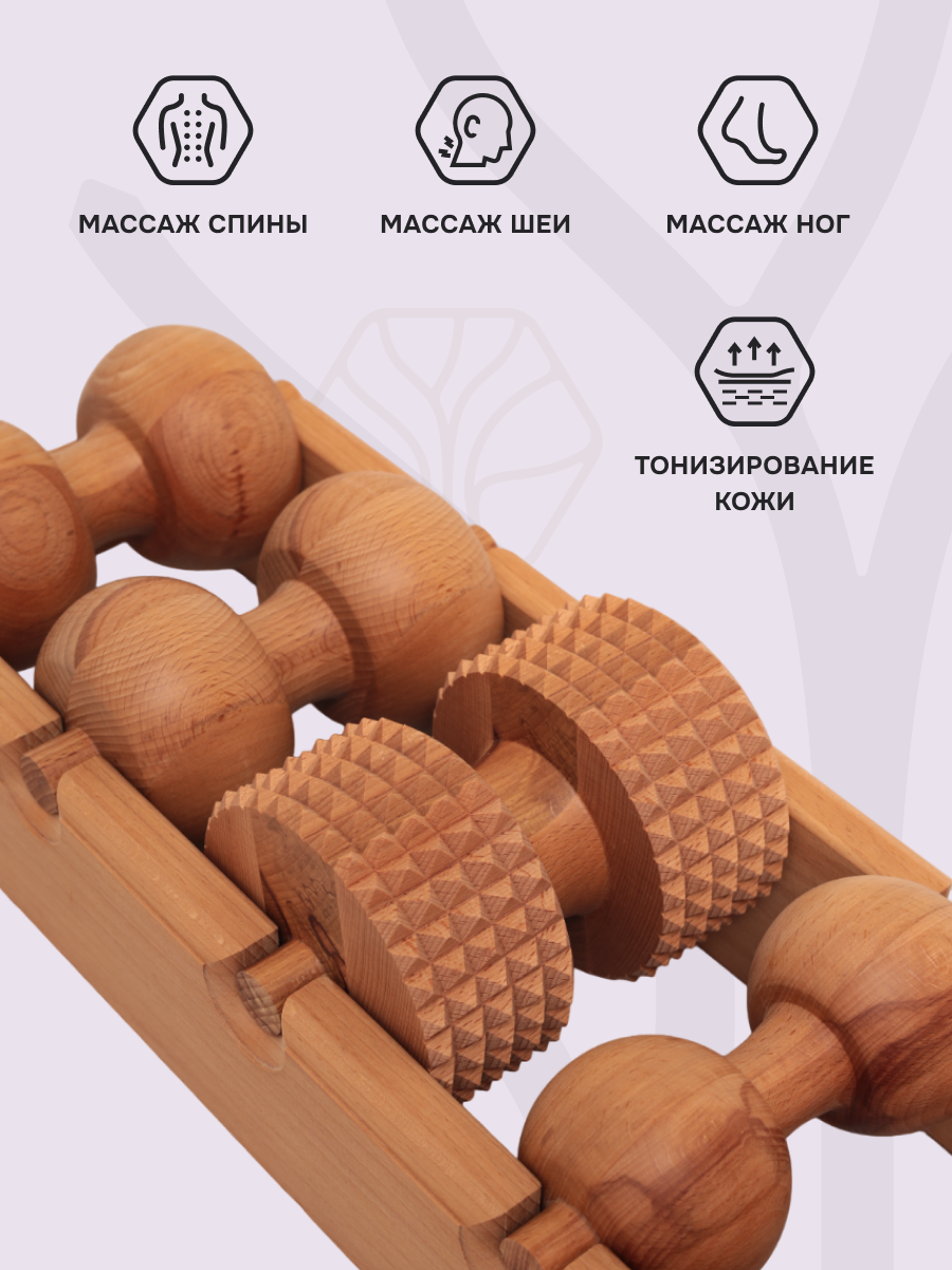 Отзывы на Массажный ролик Drevmass, с шипами, для спины, ног, стоп, деревянный.