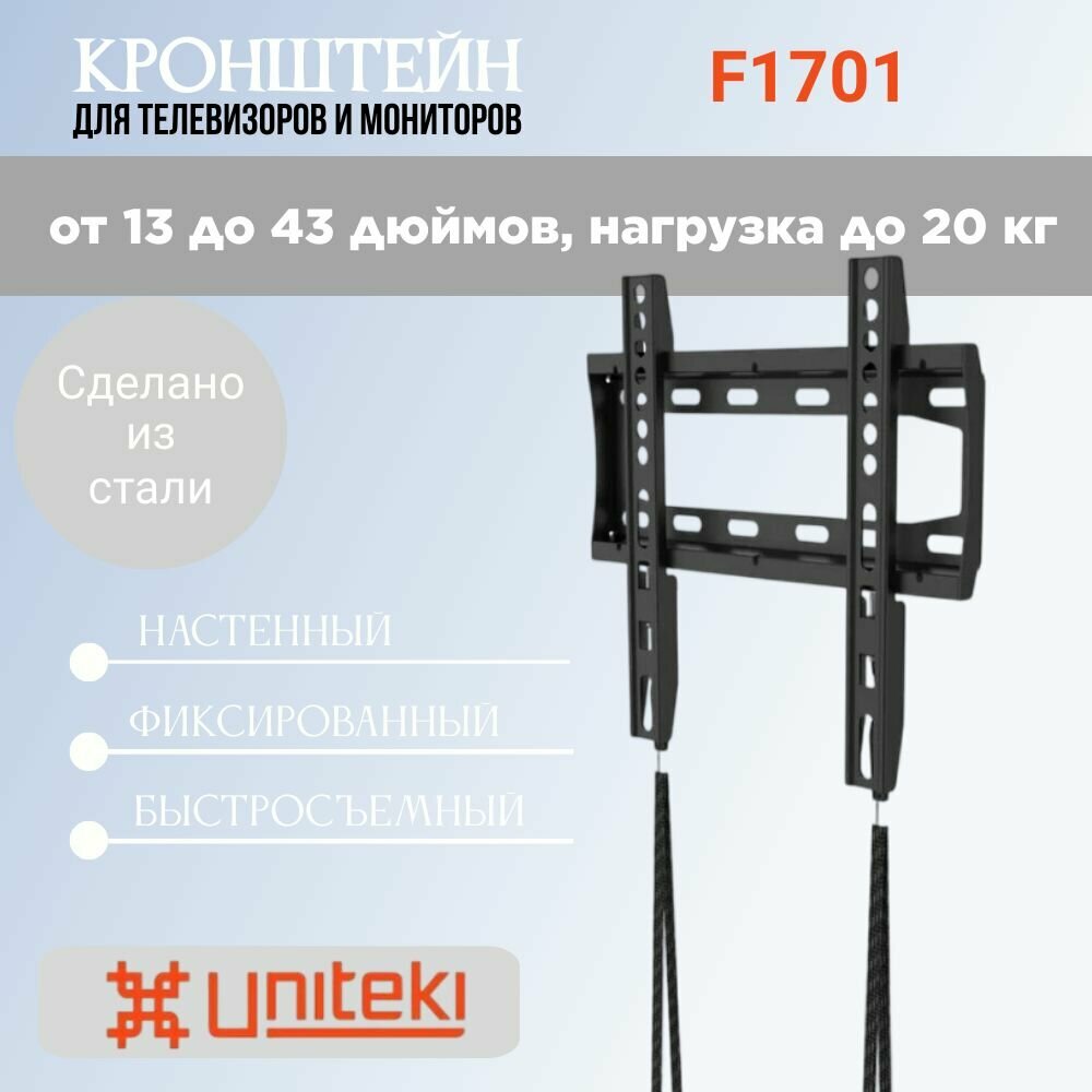 UNITEKI Кронштейн на стену фиксированный быстросъемный для телевизора и монитора UNITEKI F1701 (черный)