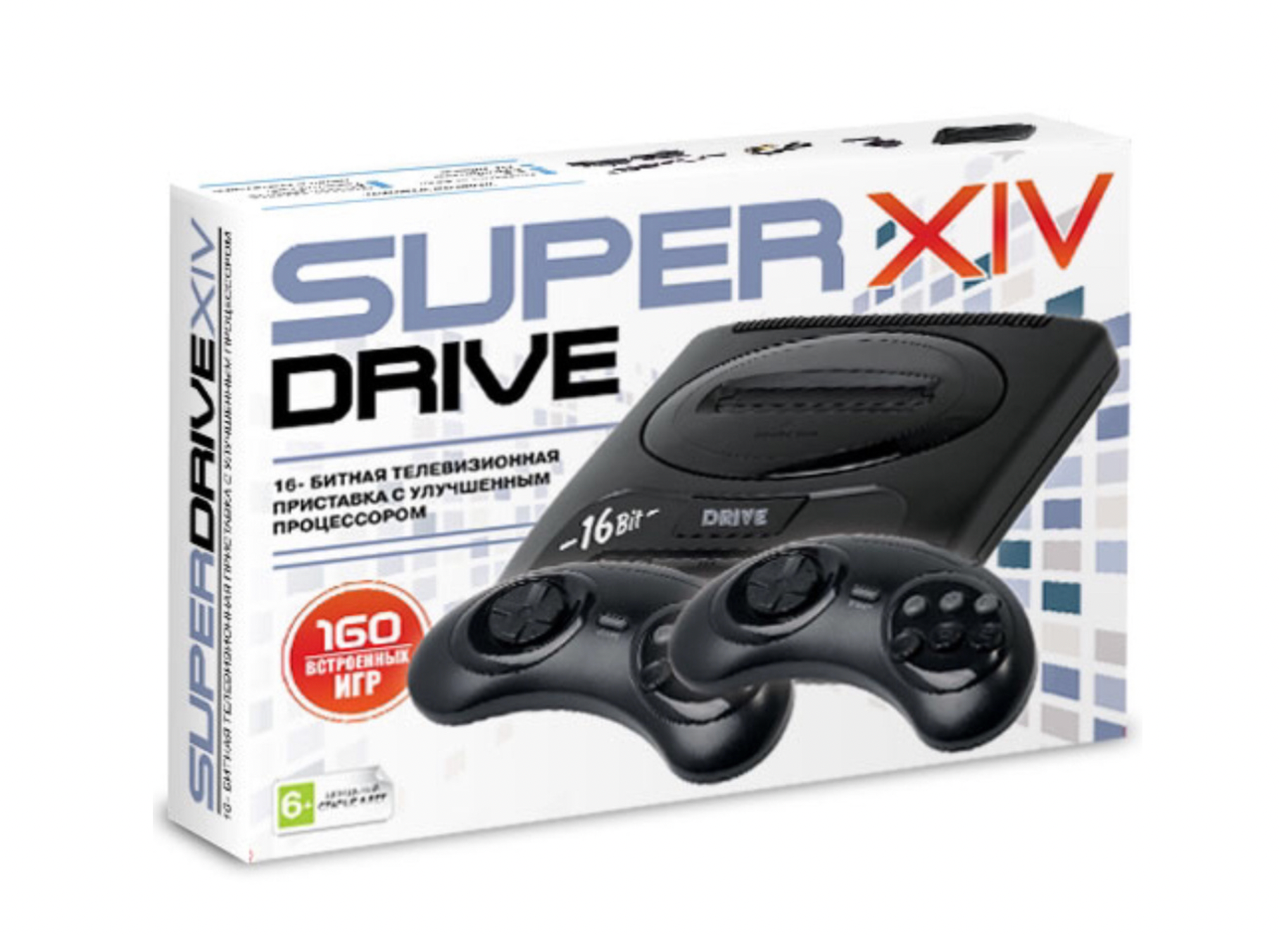 Игровая приставка 16 bit Super Drive 14 (160 в 1) + 160 встроенных игр + 2 геймпада (Черная)