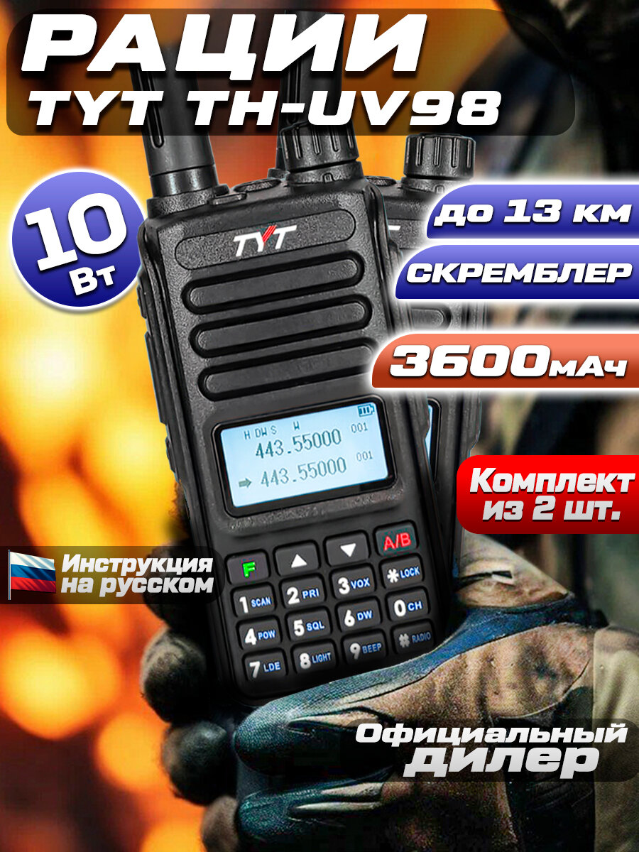 Портативная радиостанция TYT TH-UV98 10W комплект 2 шт с аккумулятором 3600 мАч информация: