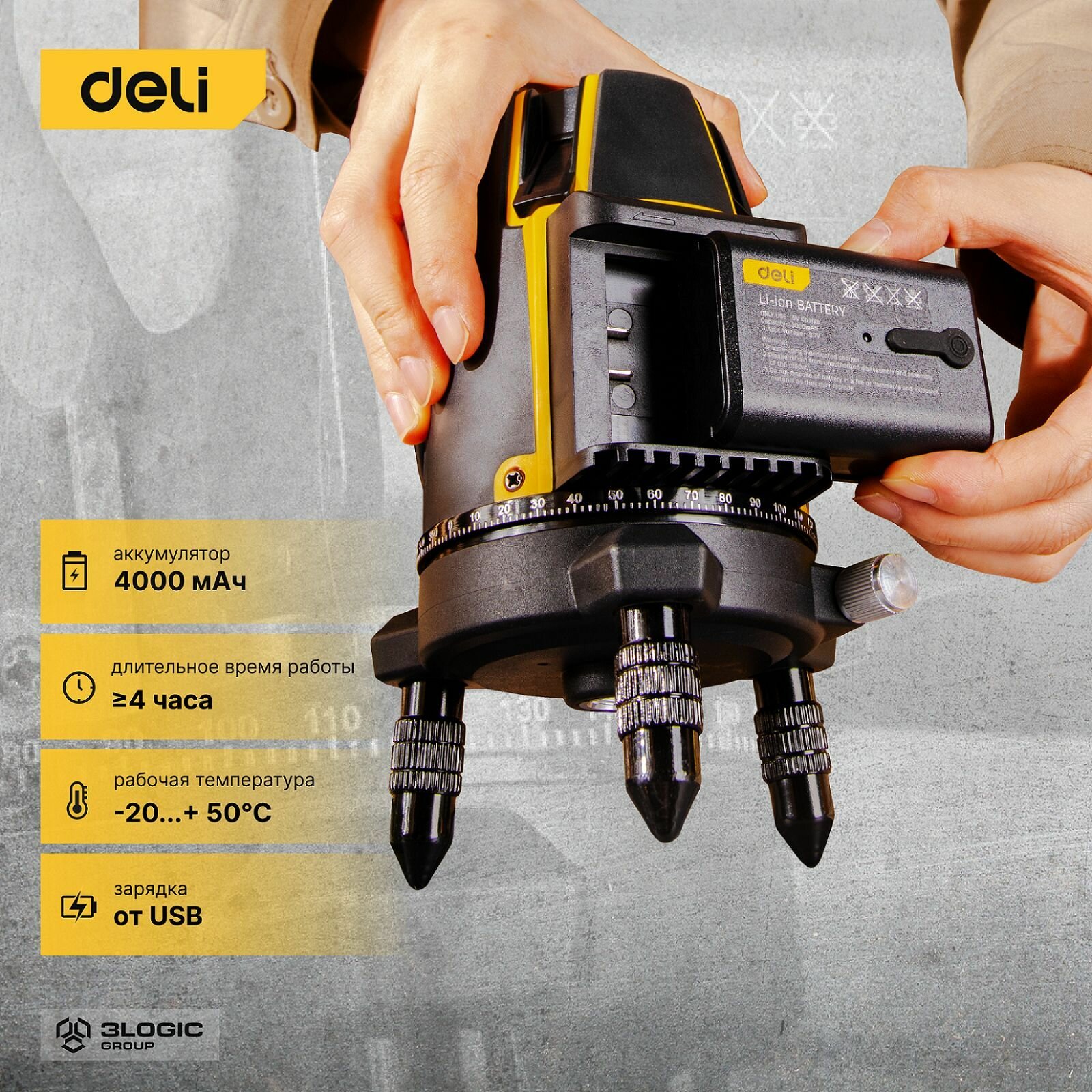 10 цен на Лазерный уровень (нивелир) Deli DL332305 5 лучей (Время работы 4ч, угол +/-3 град, самовыравнивание, зелёный луч)