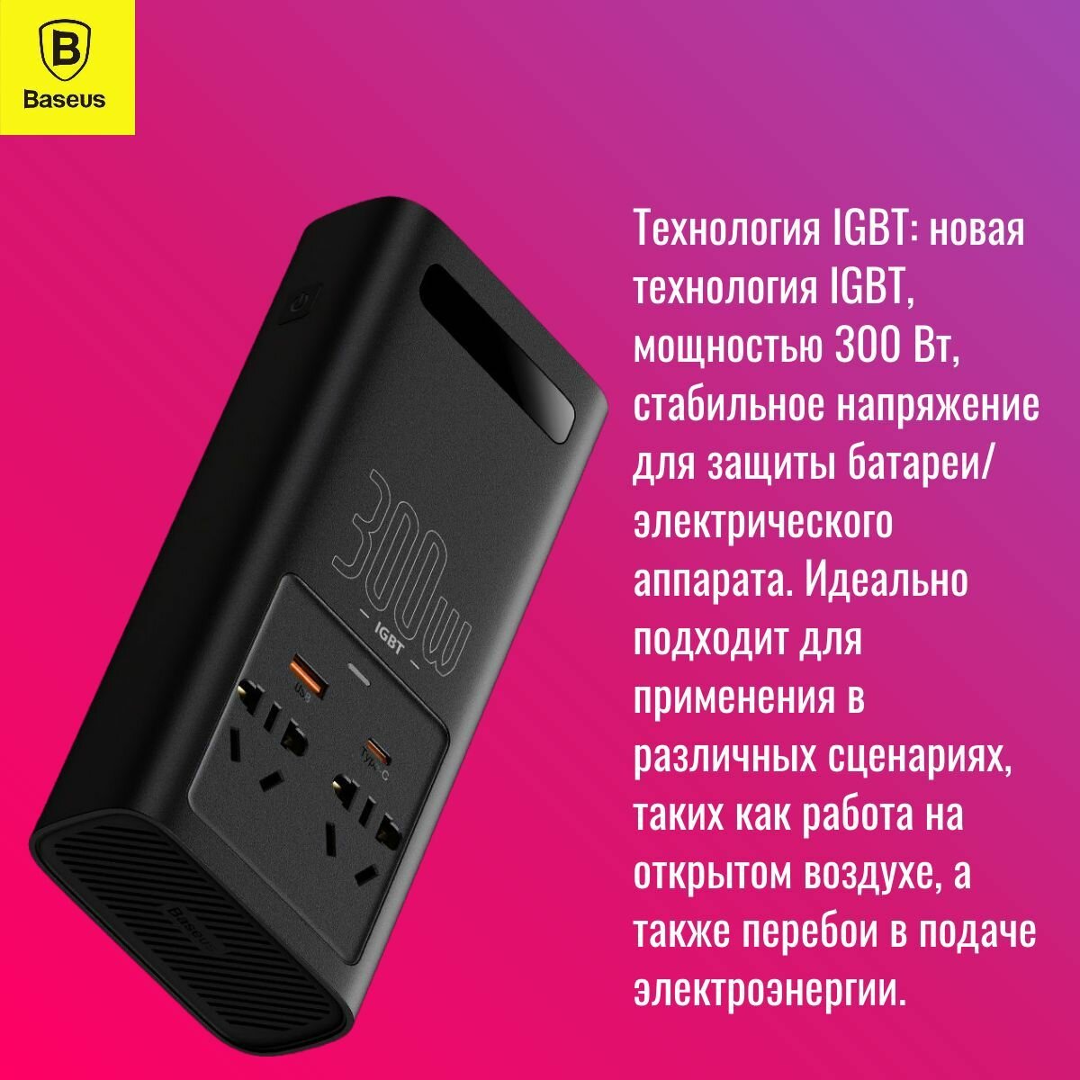 Автомобильный инвертор Baseus IGBT 220V - 300W ( CGNB010101 ) информация: