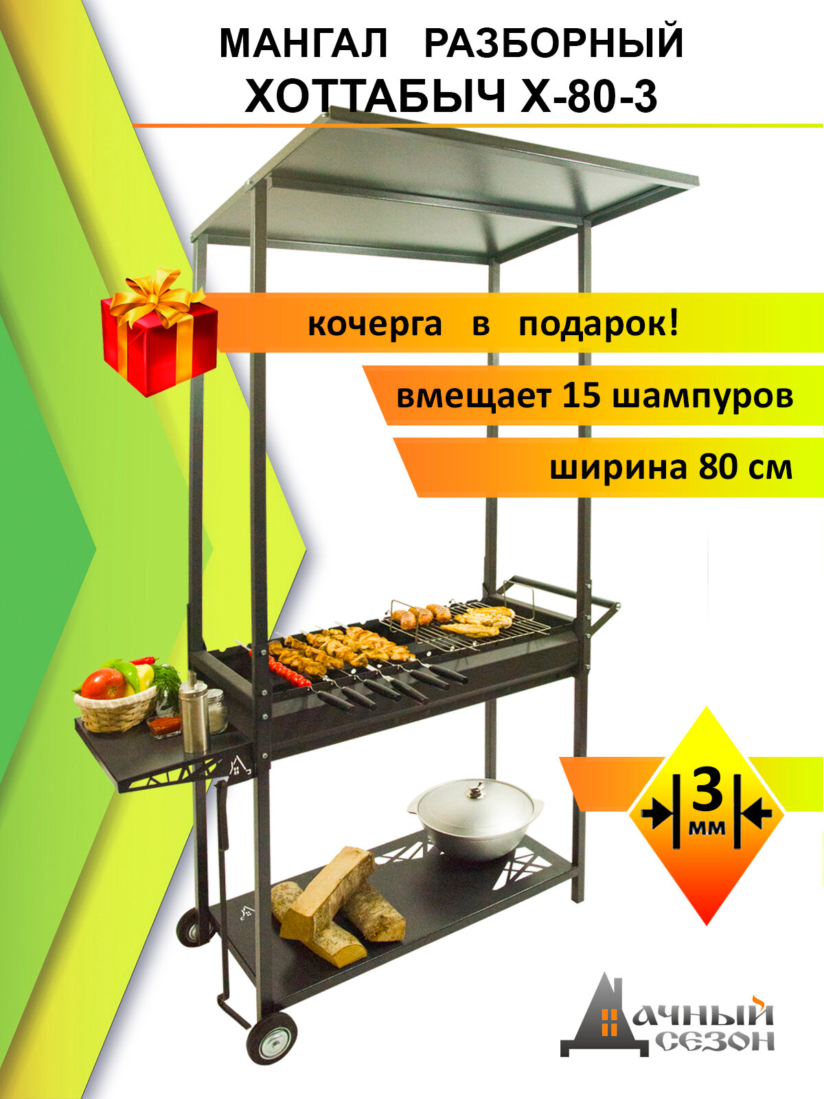 Мангал "Дачный Сезон" Хоттабыч Х-80-3, разборный, с крышей, передвижной информация: