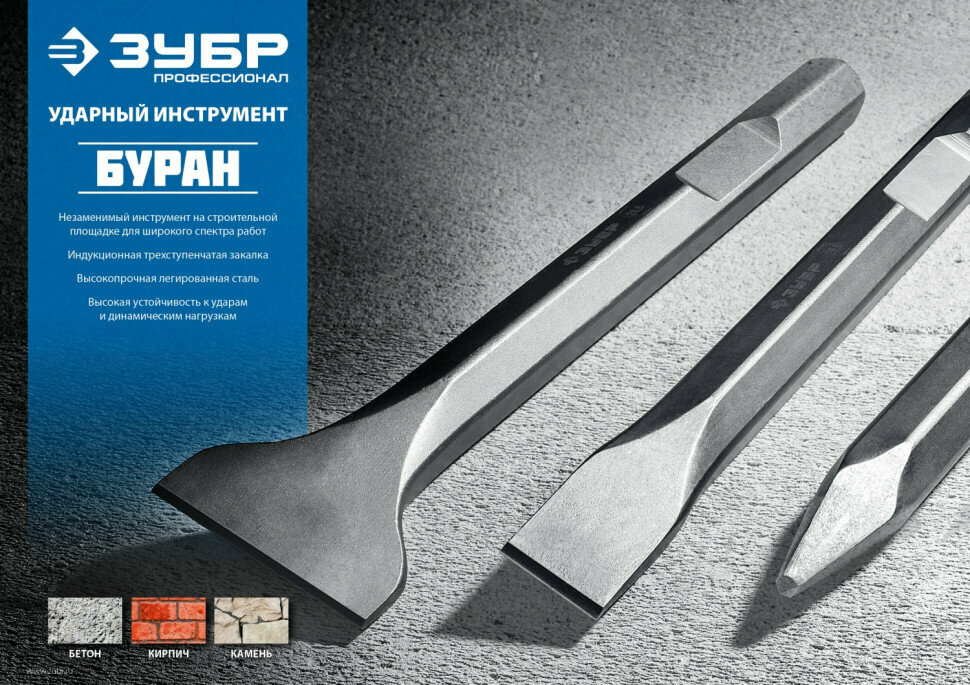 Зубило ЗУБР 29380-00-400, индукционная закалка, 50-52 HRC