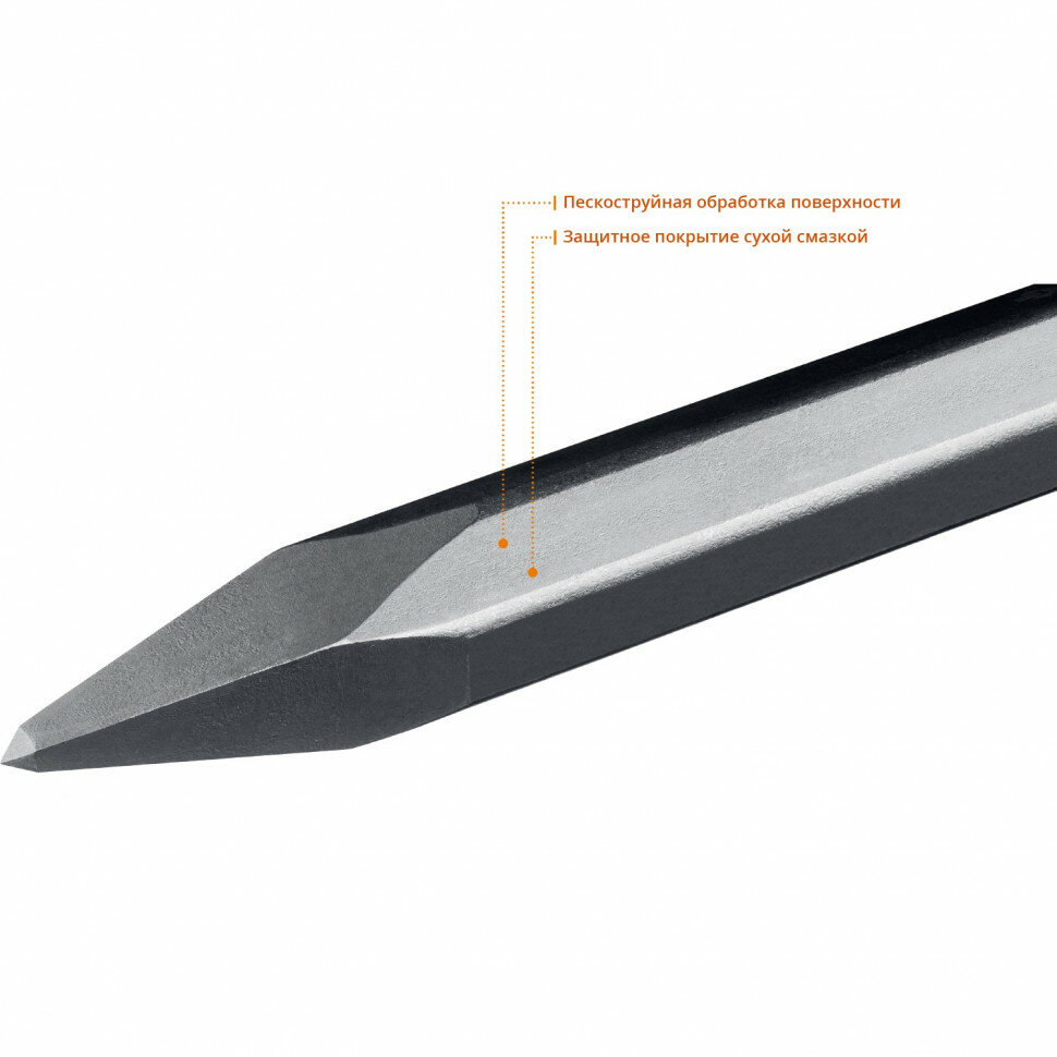 ЗУБР 400 мм, HEX 28,6, зубило пикообразное 29380-00-400 Профессионал