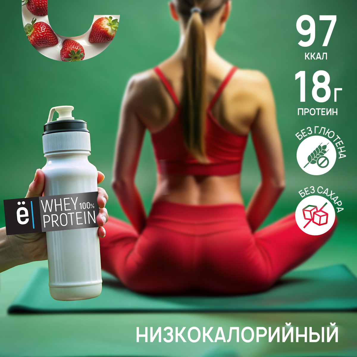 Протеин ё|батон Whey Protein сывороточный, с витаминами, для набора мышечной массы/похудения, 900 г Клубника информация: