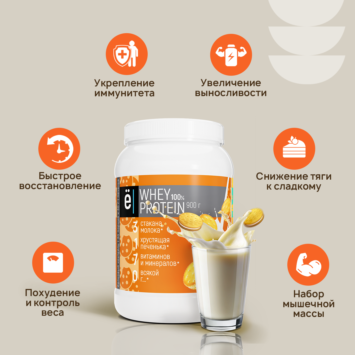 Протеиновый коктейль ё|батон Whey Protein со вкусом Печенья, для похудения и набора мышечной массы, 900 г информация: