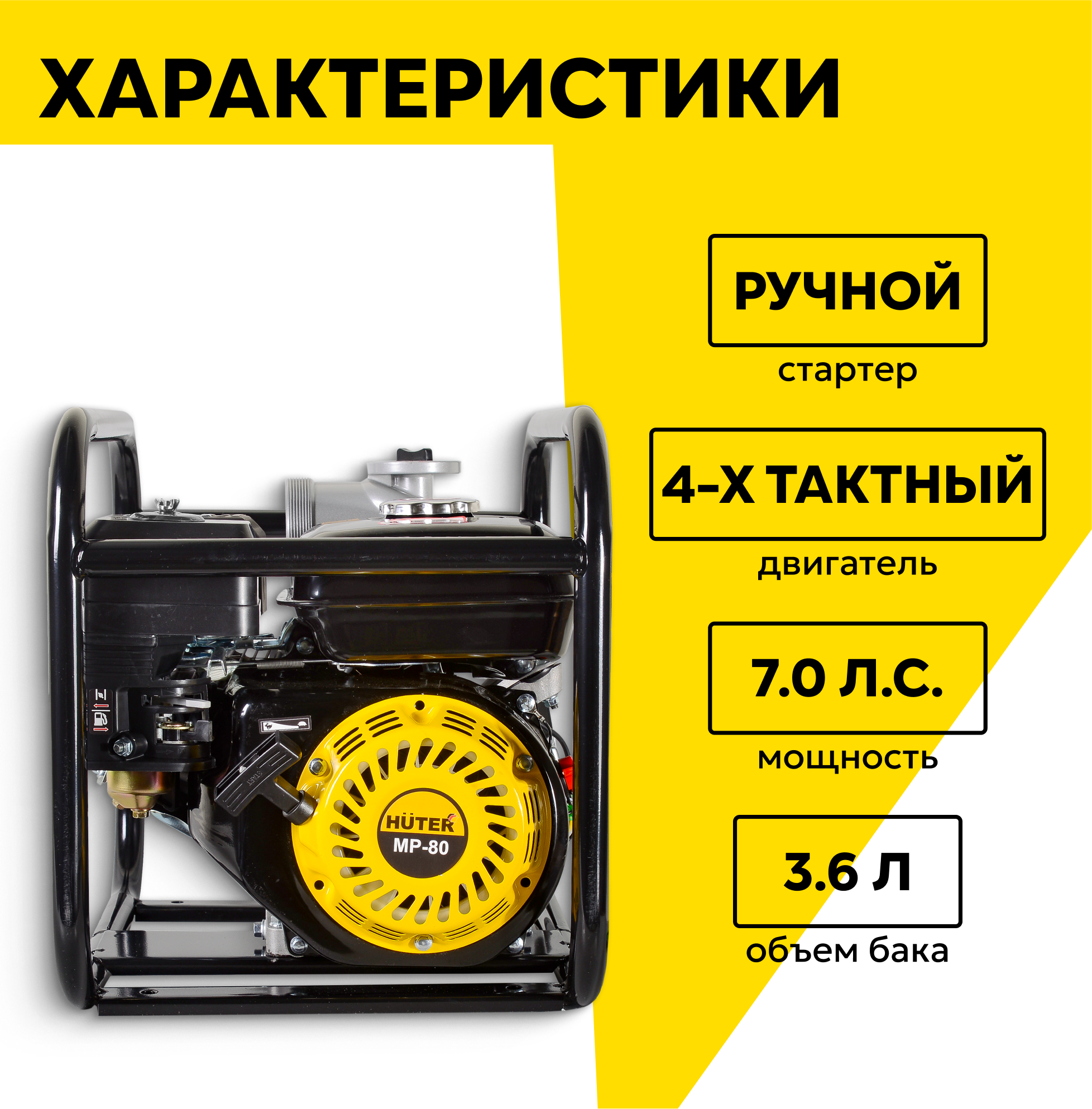 Отзывы на Мотопомпа HUTER MP-80, центробежная, самовсасывающая, для чистой воды, 7 л. с, 3800 об/мин, 80/3 мм/дюйм, 900 л/мин