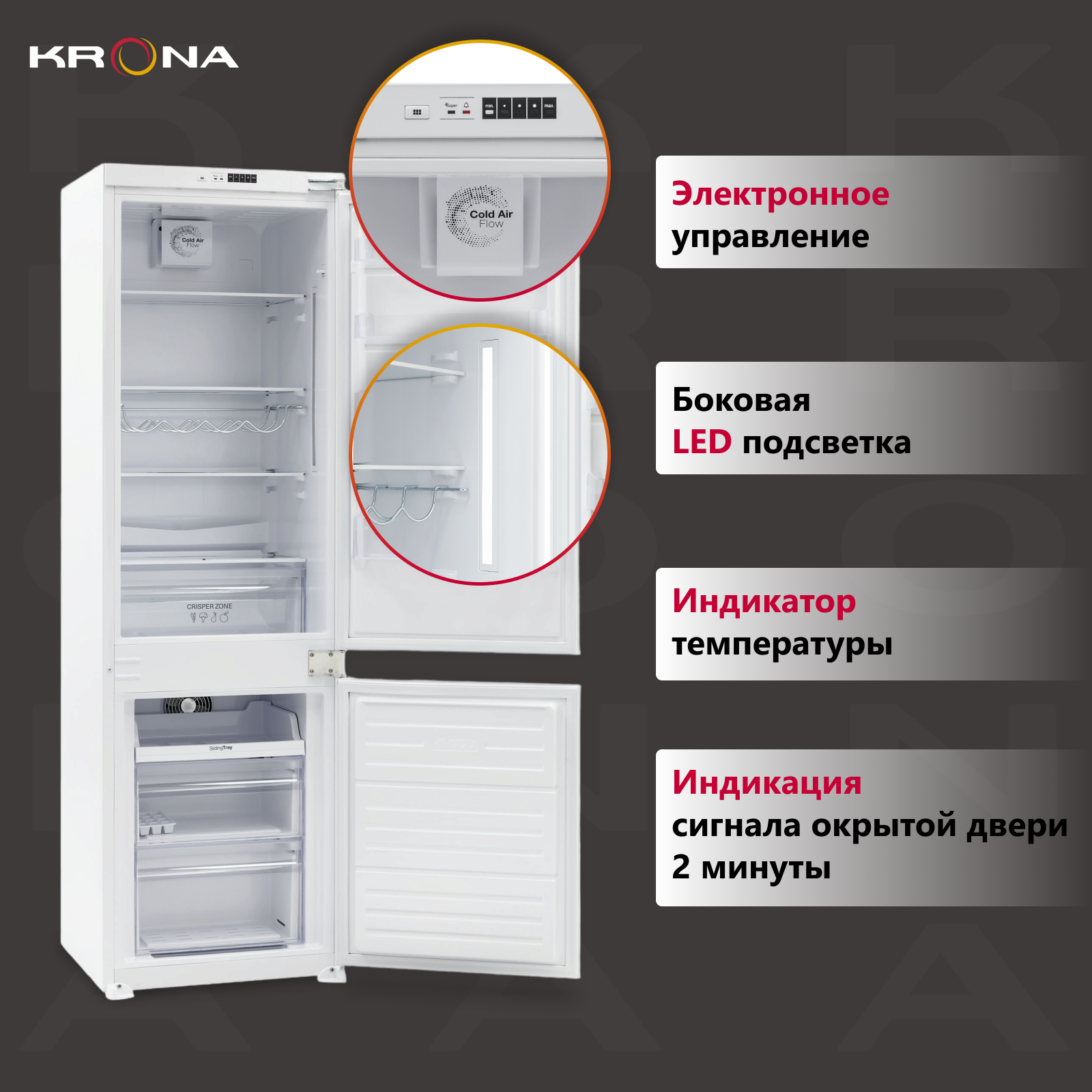Холодильник двухкамерный встраиваемый KRONA BRISTEN FNF информация: