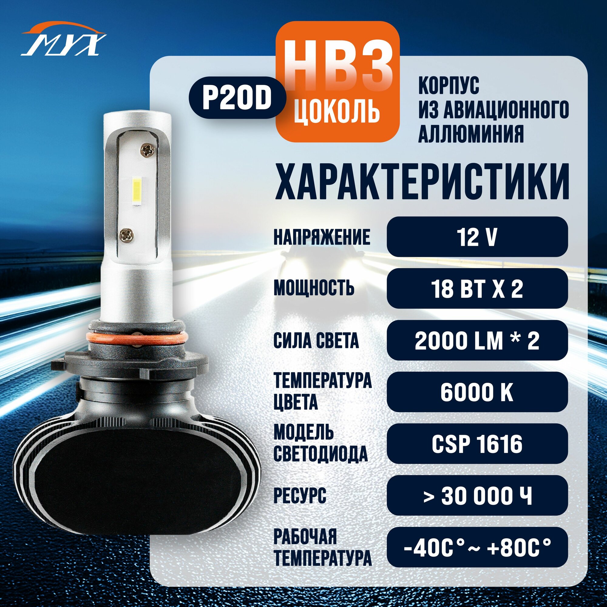 Светодиодные лампы для автомобиля MYX S1 цоколь HB3 (9005) с напряжением 12V Led лампы в авто фары комплект 2шт. информация: