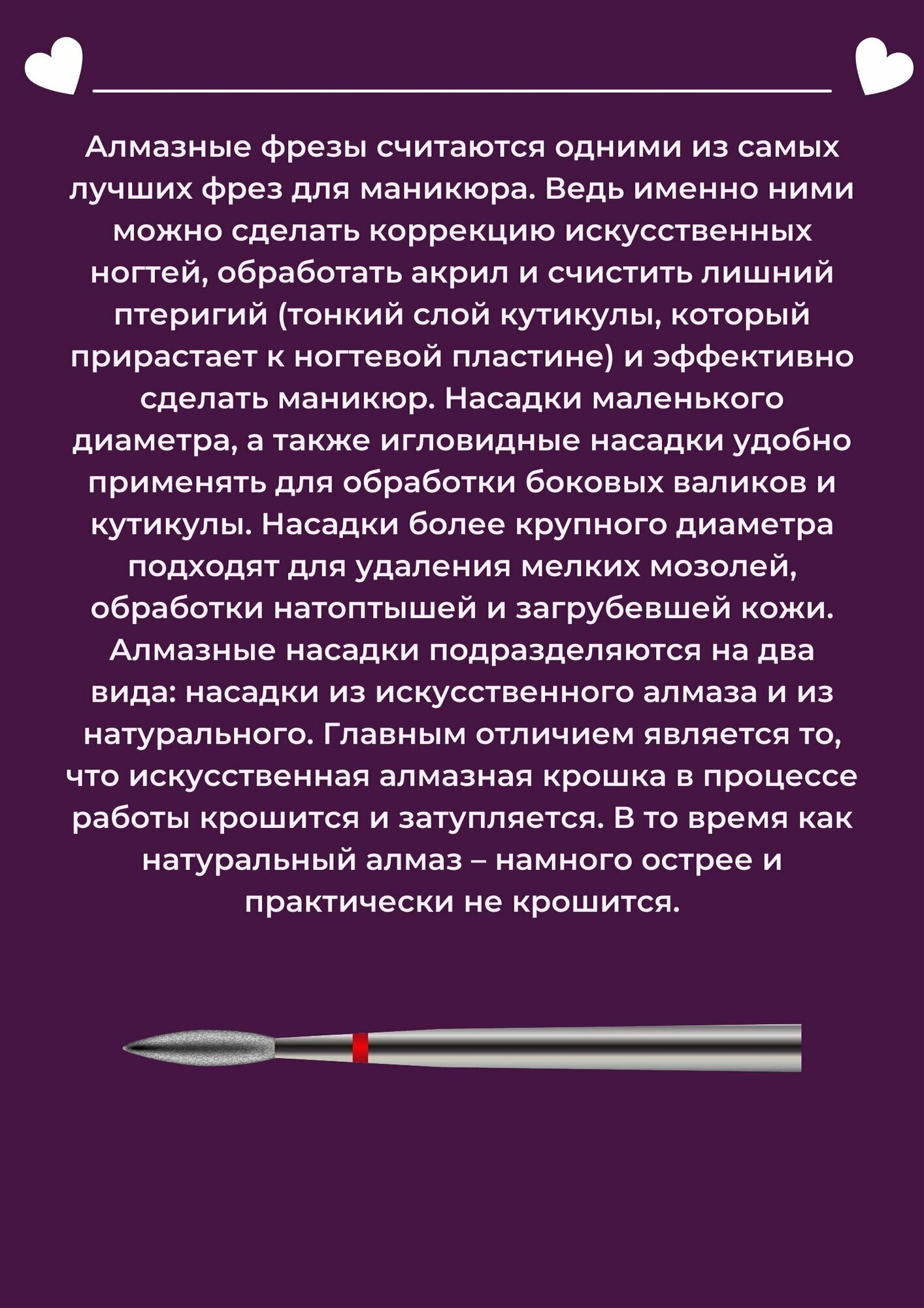 Фреза для маникюра и педикюра Irisk Professional алмазная Пламевидная, красная, диаметр 2.1 мм (Б807-09-11)