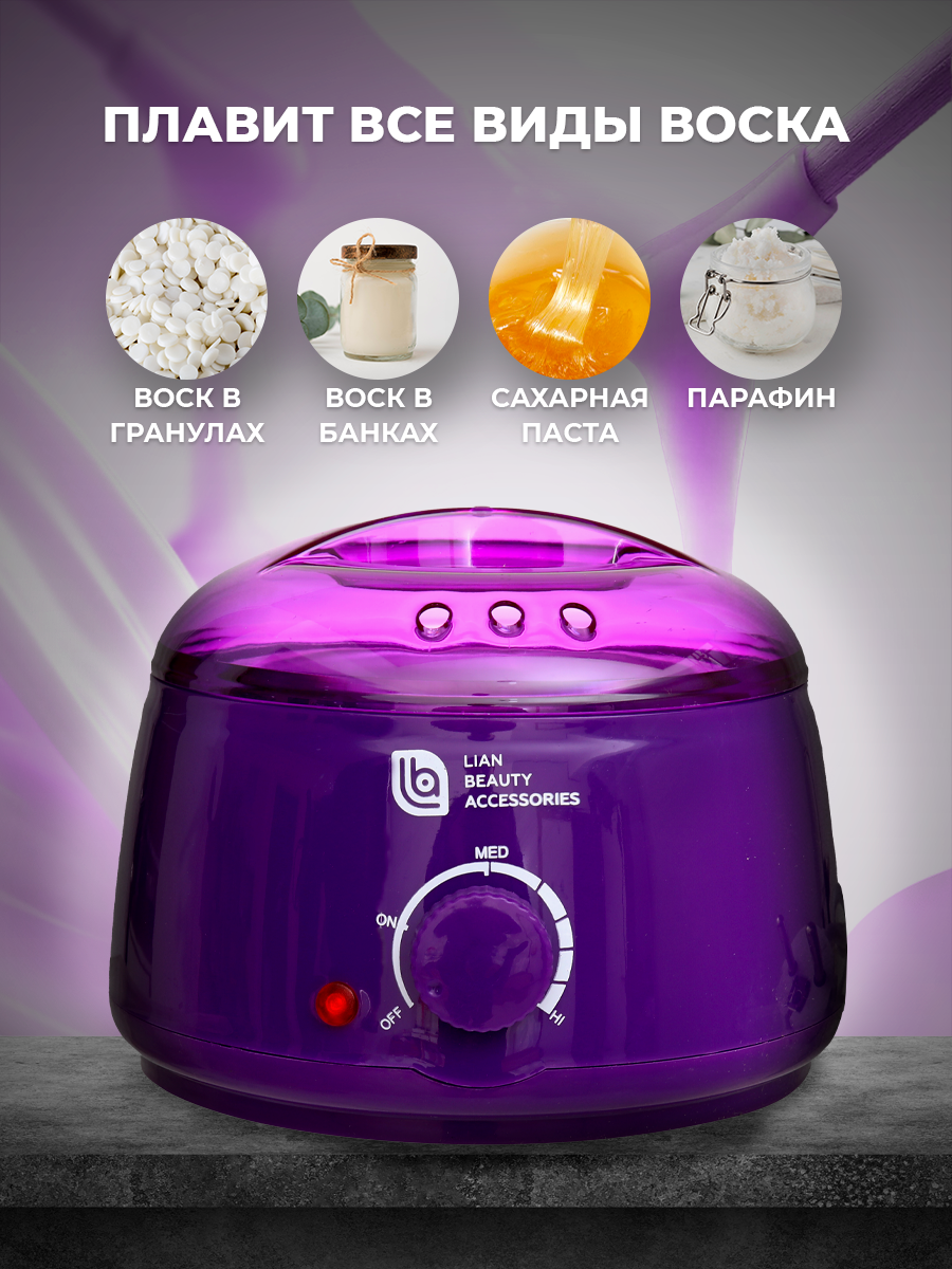 LiAN Beauty Accessories Воскоплав баночный фиолетовый/Воскоплав для депиляции/Разогреватель воска/Нагреватель для воска(пасты для депиляции с термостатом) 400 мл 1 009 ₽