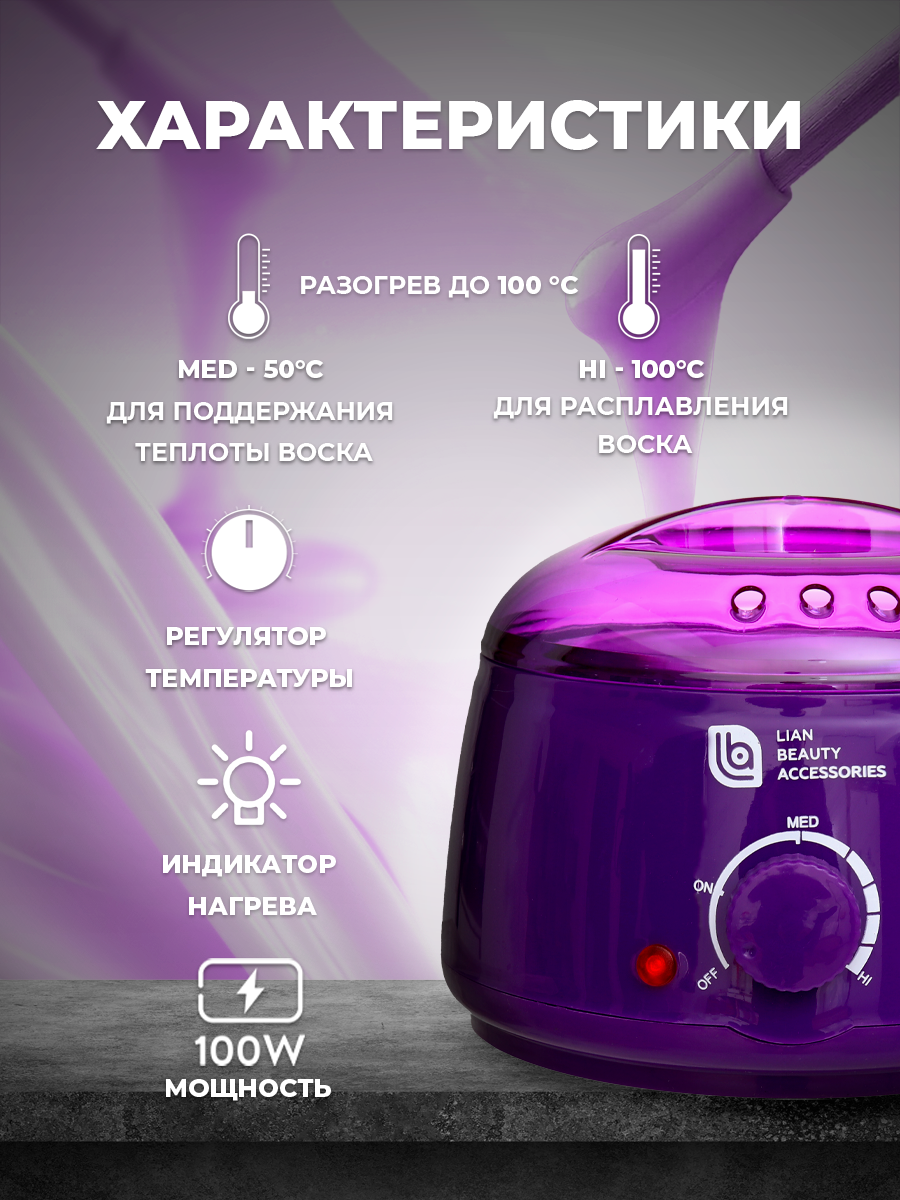 10 цен на Воскоплав для депиляции баночный с термостатом Pro wax 100 фиолетовый 400мл Lian Beauty Aсcessories