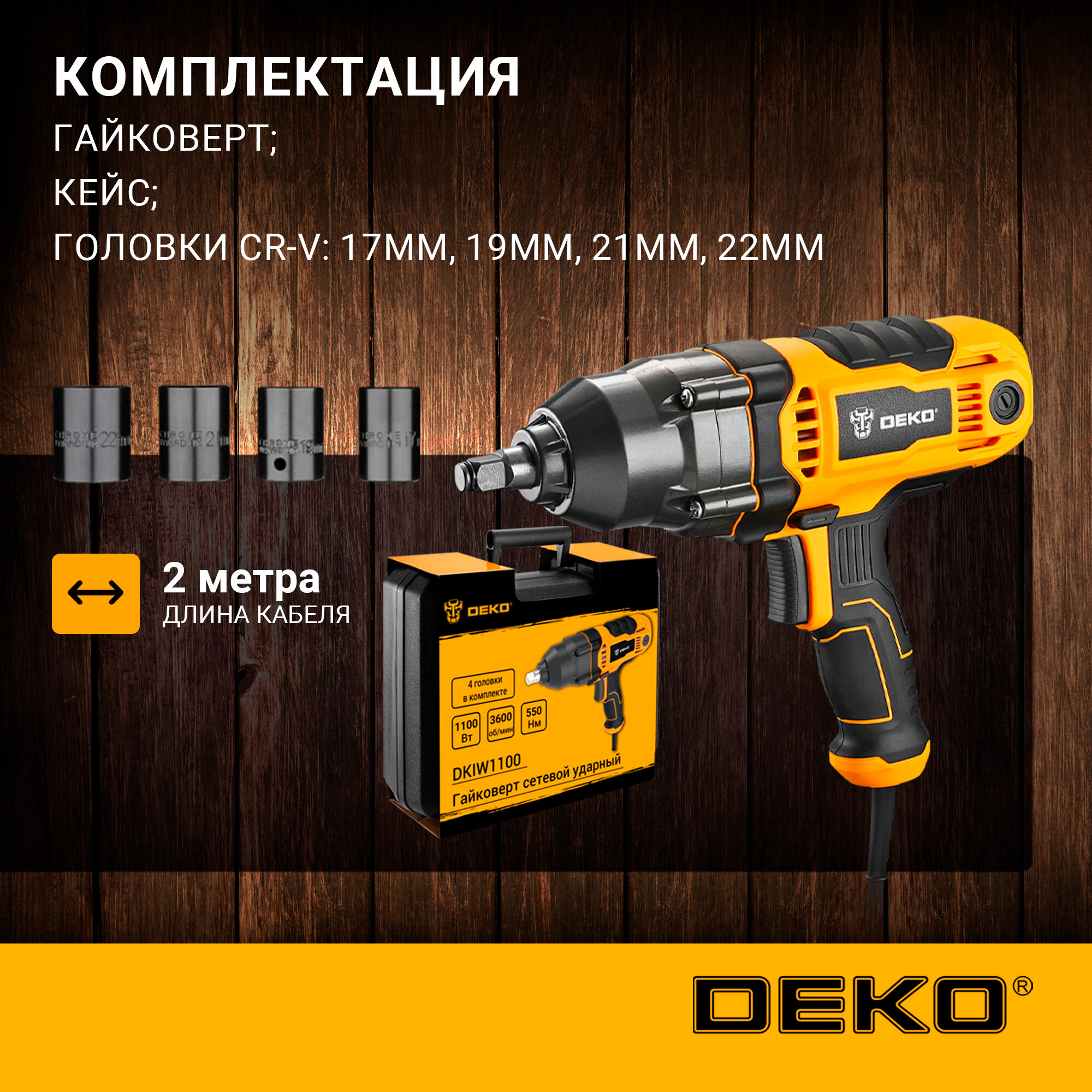 Гайковерт сетевой ударный DEKO DKIW1100, 1100 Вт, 550 Нм, кейс информация: