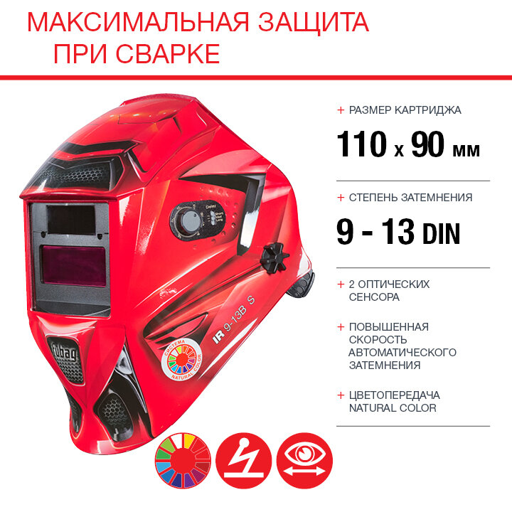 Сварочная маска FUBAG IR 9-13 B S, хамелеон, красная, Optima team 9-13 информация: