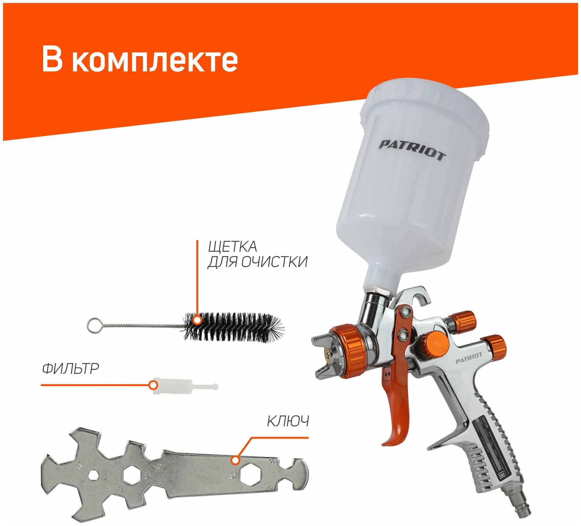 Профессиональный пневмокраскораспылитель PATRIOT LVLP 1,2A / Краскораспылитель с бачком / Краскопульт пневматический