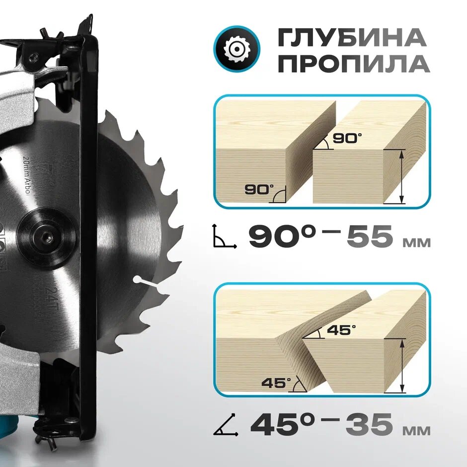 | Глубина пропила (45°) | 35 мм |