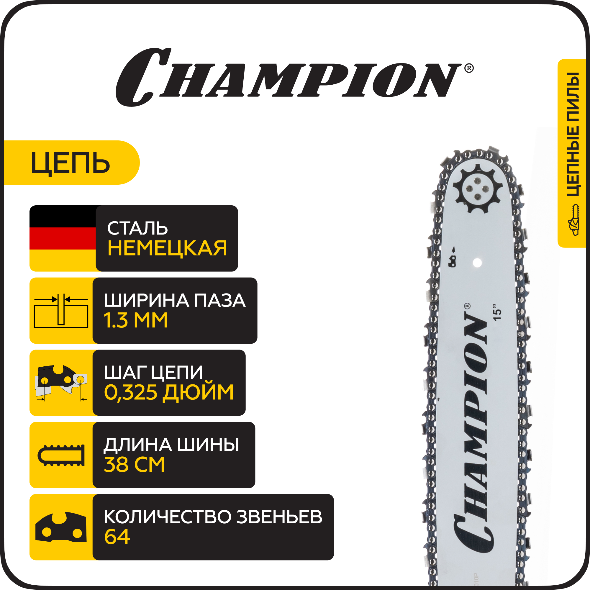 Бензопила CHAMPION 256-15"-0,325-1,3-64 (2,5кВт 3,4л. с 54см³ легкий старт 5,6кг) 13 890 ₽