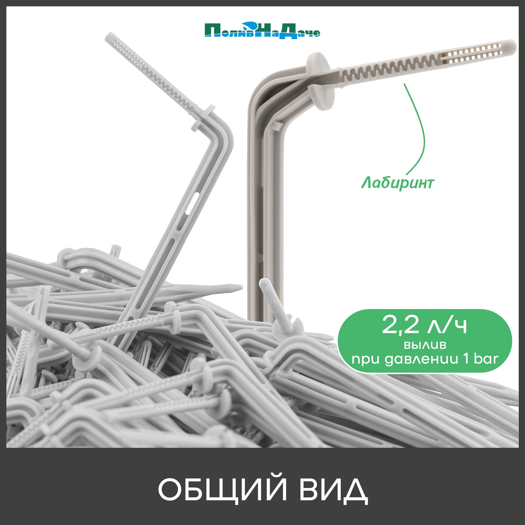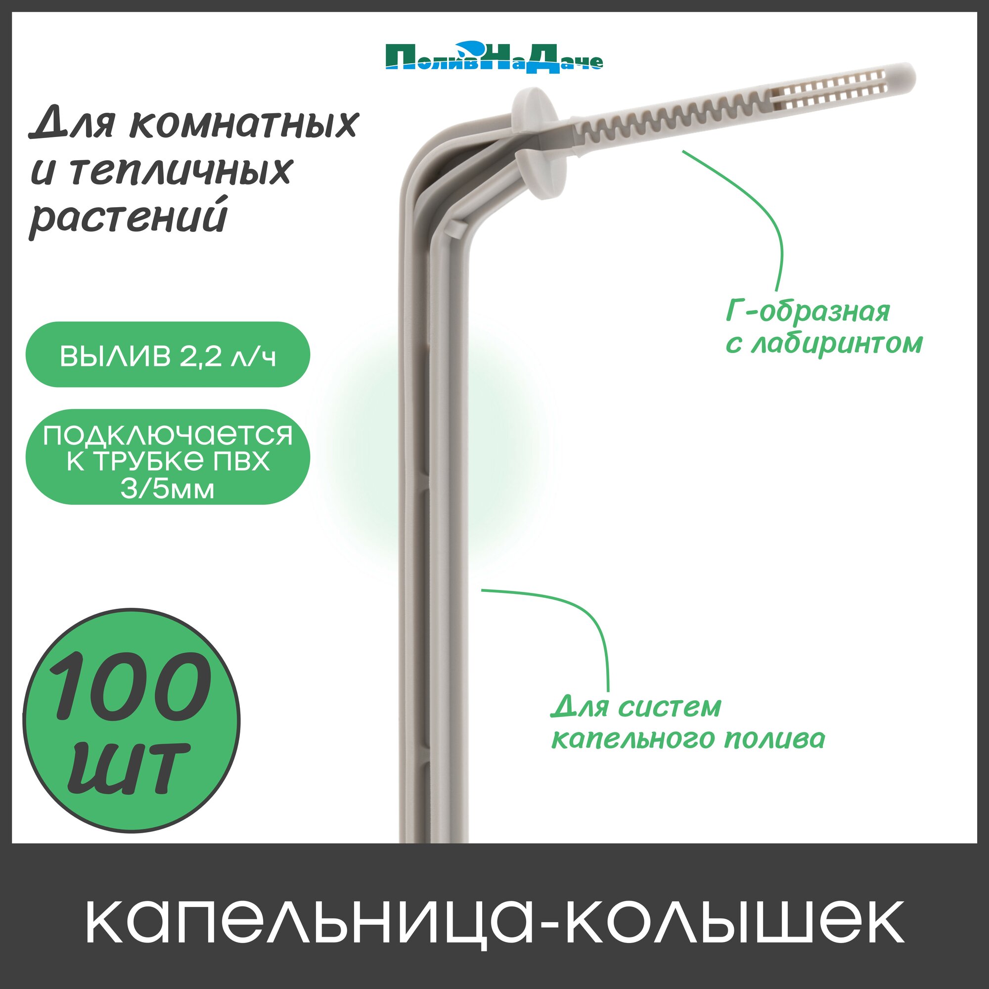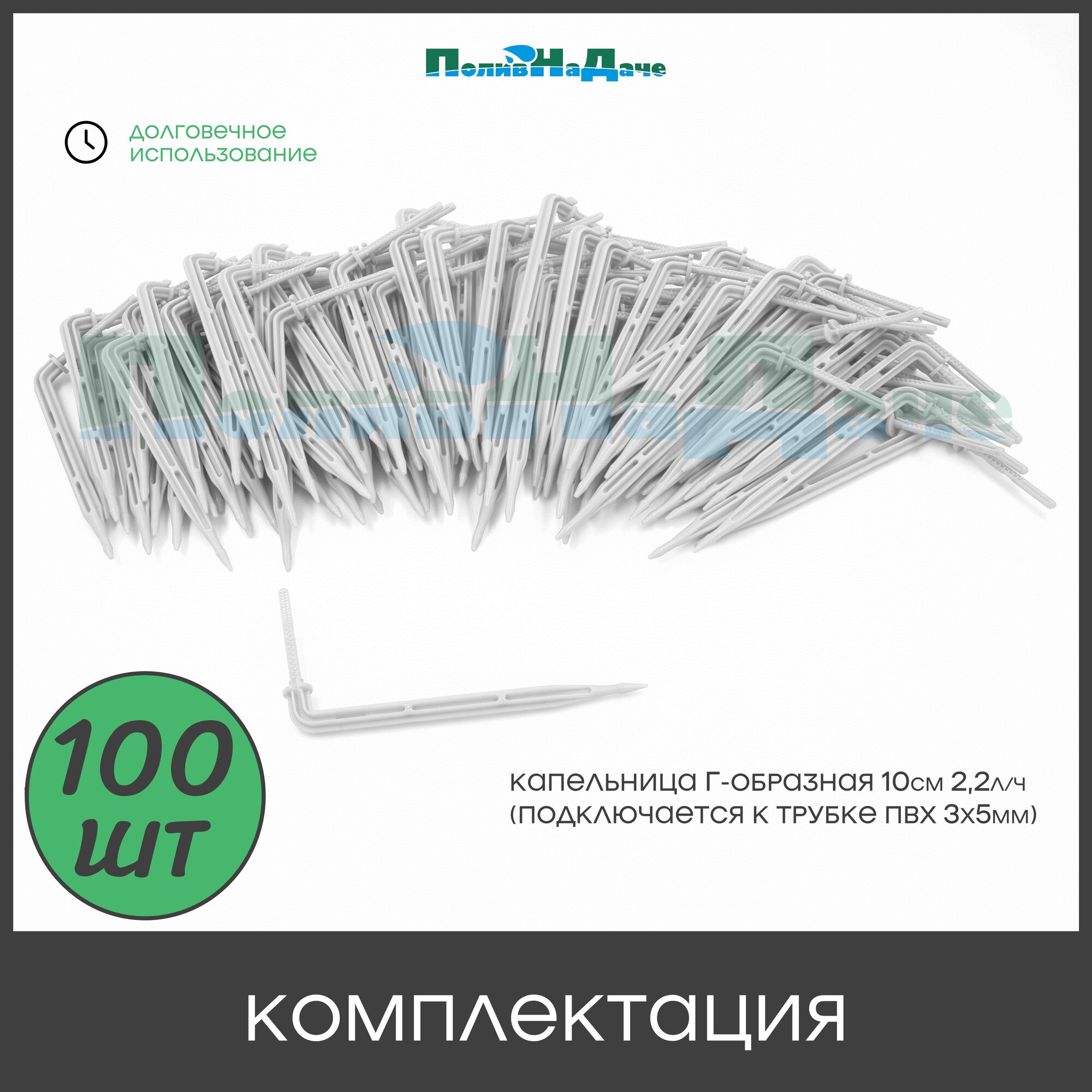 10 цен на Капельница Г-образная с лабиринтом, 10см, 2л/ч, серая (подключается к трубке ПВХ 3/5мм). Упаковка 100шт.