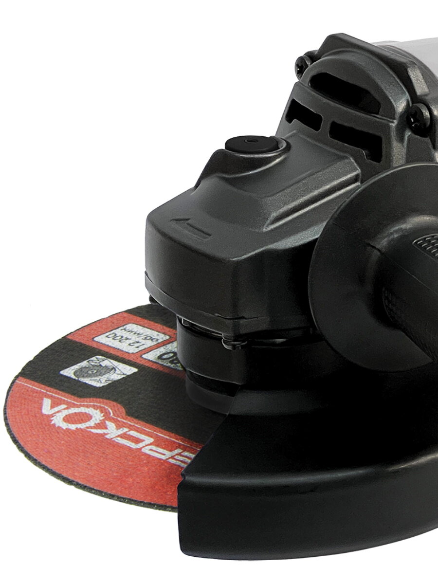 Комплектация | машина шлифовальная угловая, руководство по эксплуатации и инструкция по безопасности, кожух защитный, рукоятка боковая, ключ специальный, гайка крепления шлифкруга, фланец опорный шлифкруга |