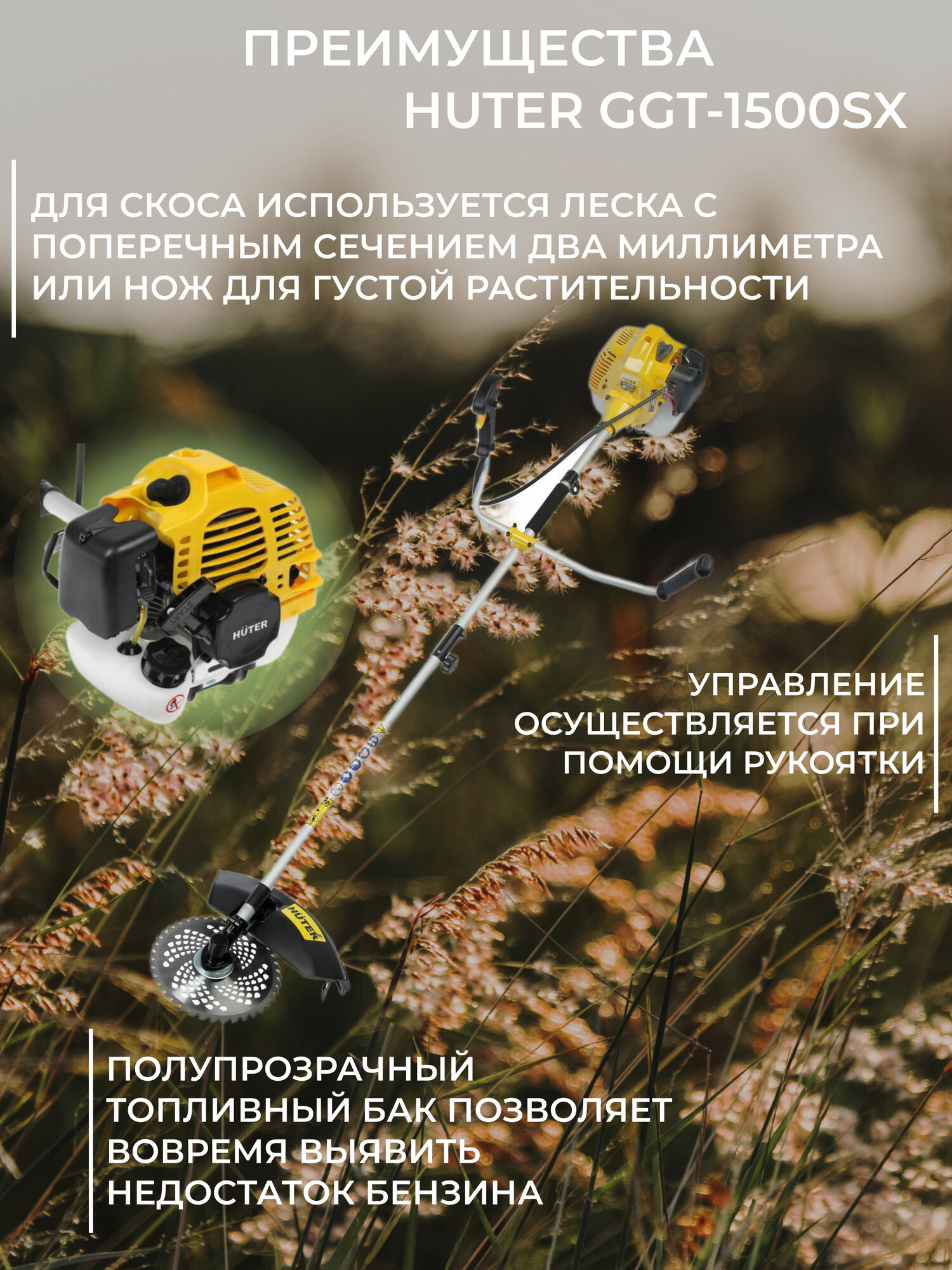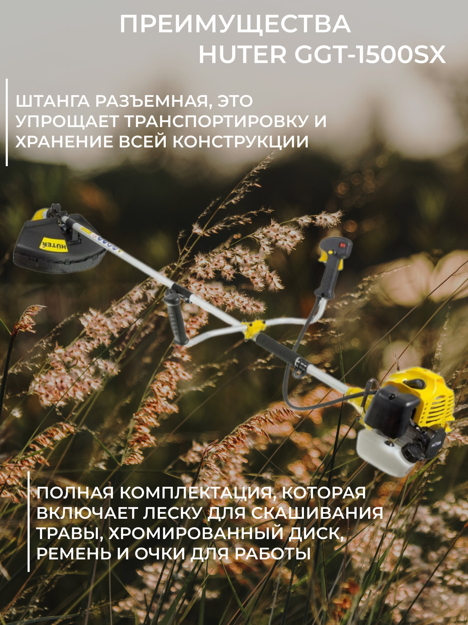 Триммер бензиновый Huter GGT-1500SX, 2 л. с, 46 см информация: