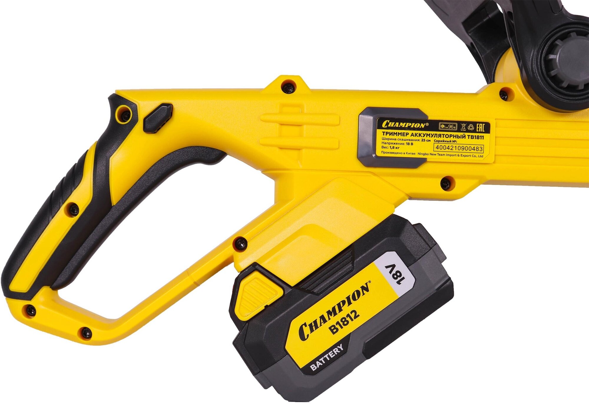 Отзывы на Триммер аккумуляторный CHAMPION TB1811 18V, Li-ion, шир. 25см, 1.8мм, 9000об/мин, без акк. и з/у