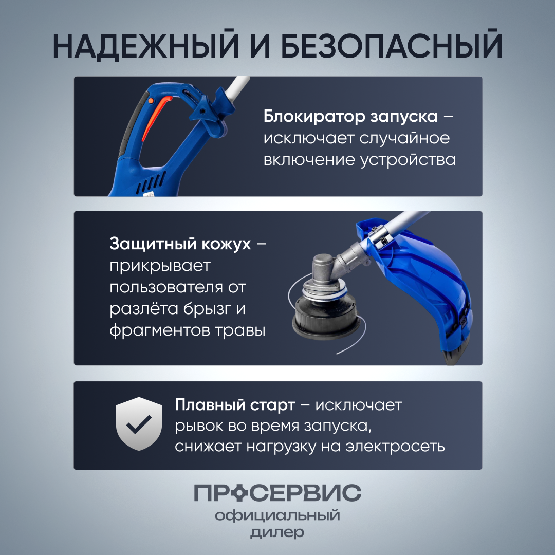 | Особенности | разборная штанга; ширина скашивания ножом: 25.5 см; напряжение/частота: 220-230В/50Гц; обороты двигателя нож/леска: 7000/10000 об/мин |