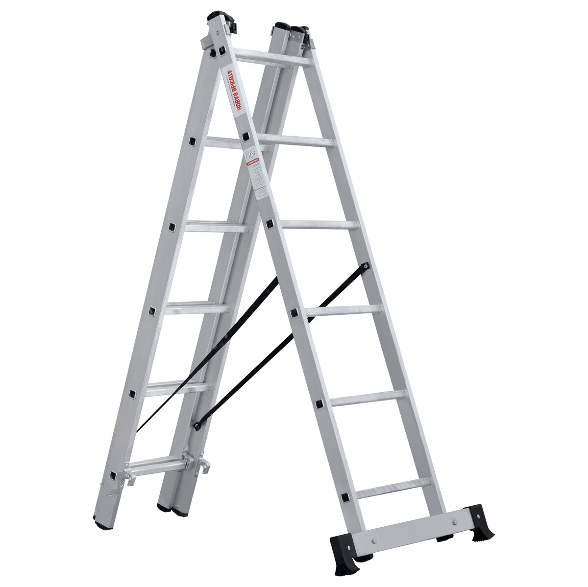 Лестница-стремянка трехсекционная Новая высота NV 1230, алюминиевая, 3 x 6 ступеней, 1,62 - 3,7 м