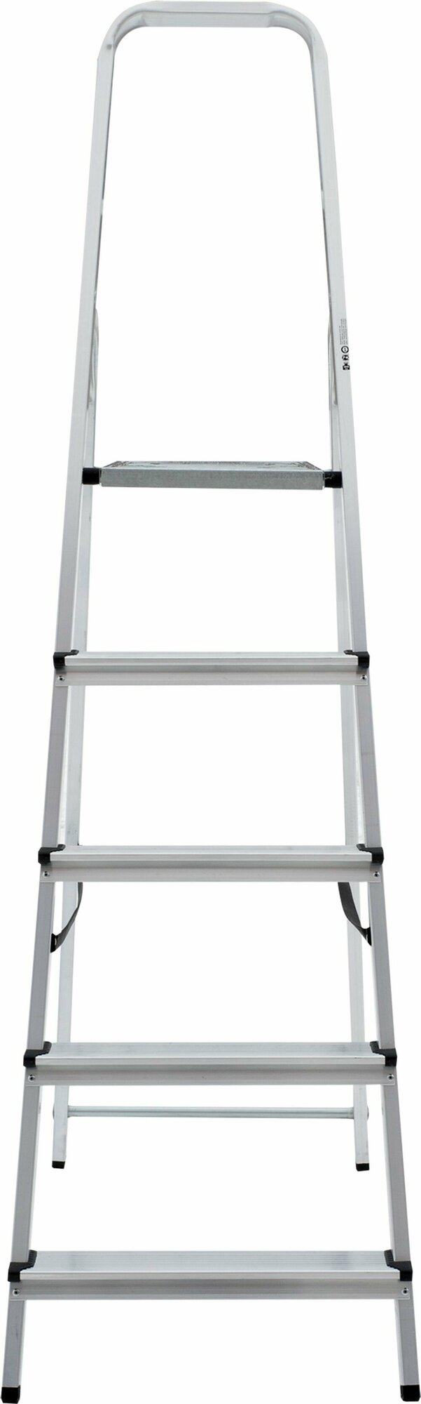 Стремянка алюминиевая 5 ступеней, высота площадки 1,04м, дуга безопасности 0,6м, площадка 26*26см, до 150кг, вес 4кг, новая высота, 1110105