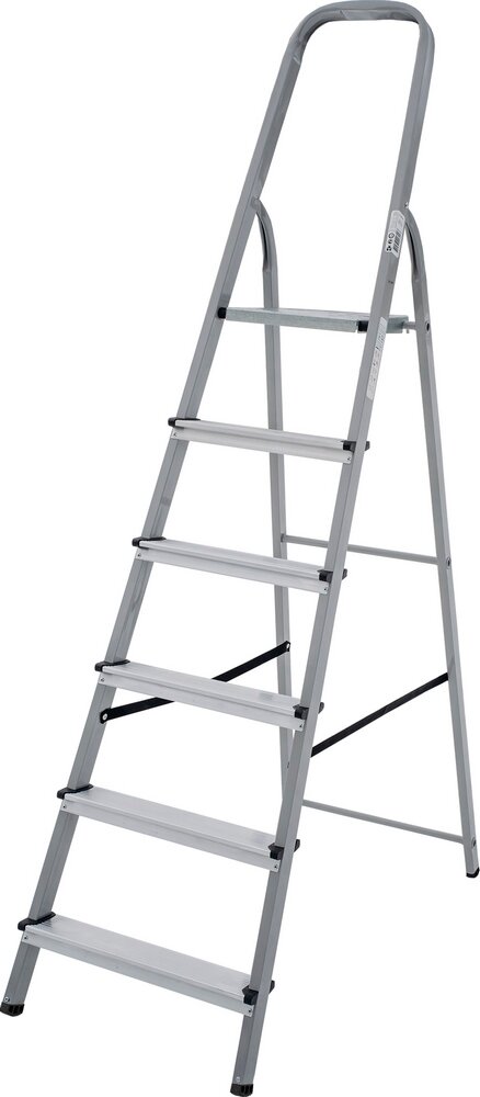 Стремянка сталь / алюминий 6 ступени, высота площадки 1,25м, дуга 0,6м, площадка 26*26см, нагрузка 150кг, вес 7кг новая высота, 1130106