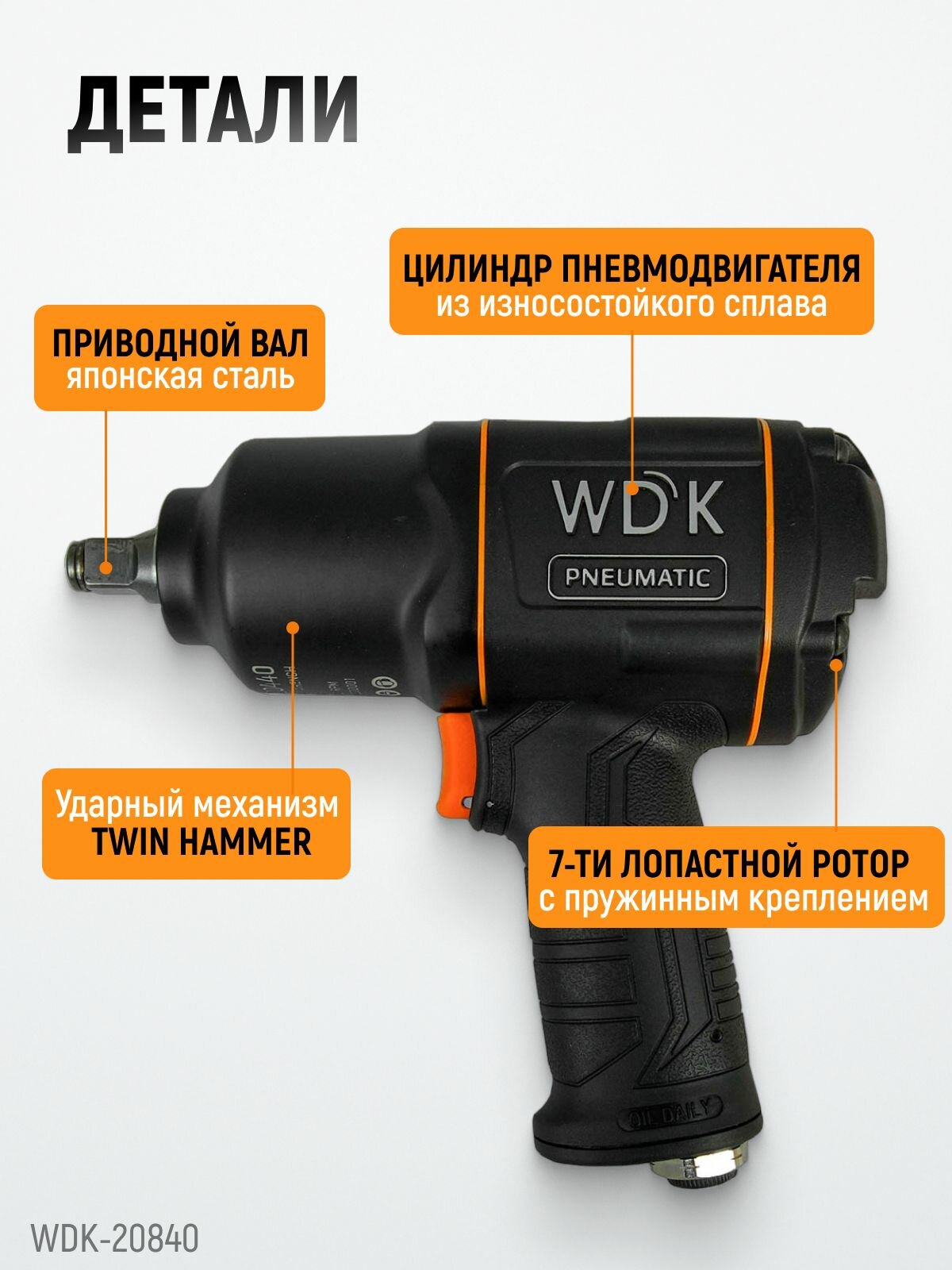 Гайковерт пневматический ударный 1/2", 1360 Нм 8500 об/мин WIEDERKRAFT WDK-20440 информация: