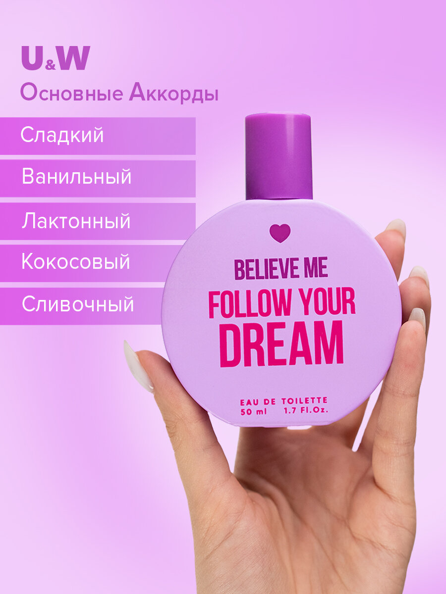 You&World Believe me Follow your dream 50 мл Белив ми Фоллоу е дрим туалетная вода женская, парфюмерия женская, кокос, ваниль