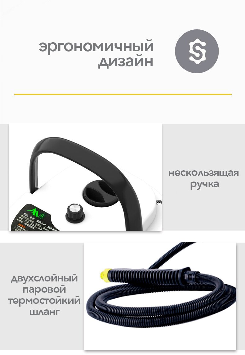 Многофункциональный пароочиститель Sauber Steam PRO с латунным стержнем, 4 насадки, 6-ти ступенчатый, мощность 2500 Вт, давление 3 Bar, цвет белый