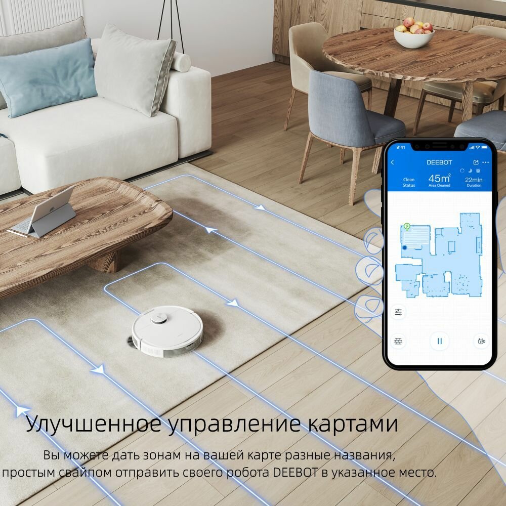 Лазерный Робот-пылесос ECOVACS DEEBOT N8, Русская версия, с приложением управления
