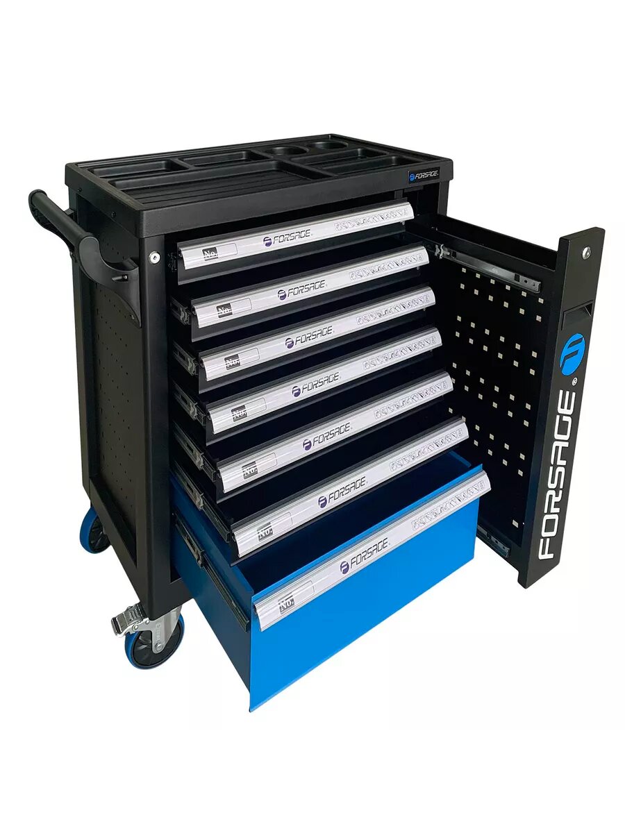 FORSAGE F-55300 Тележка для инструментов 7-и полочная с набором инструментов 274 пр и дополнительной боковой секцией 810х480х850мм 1шт