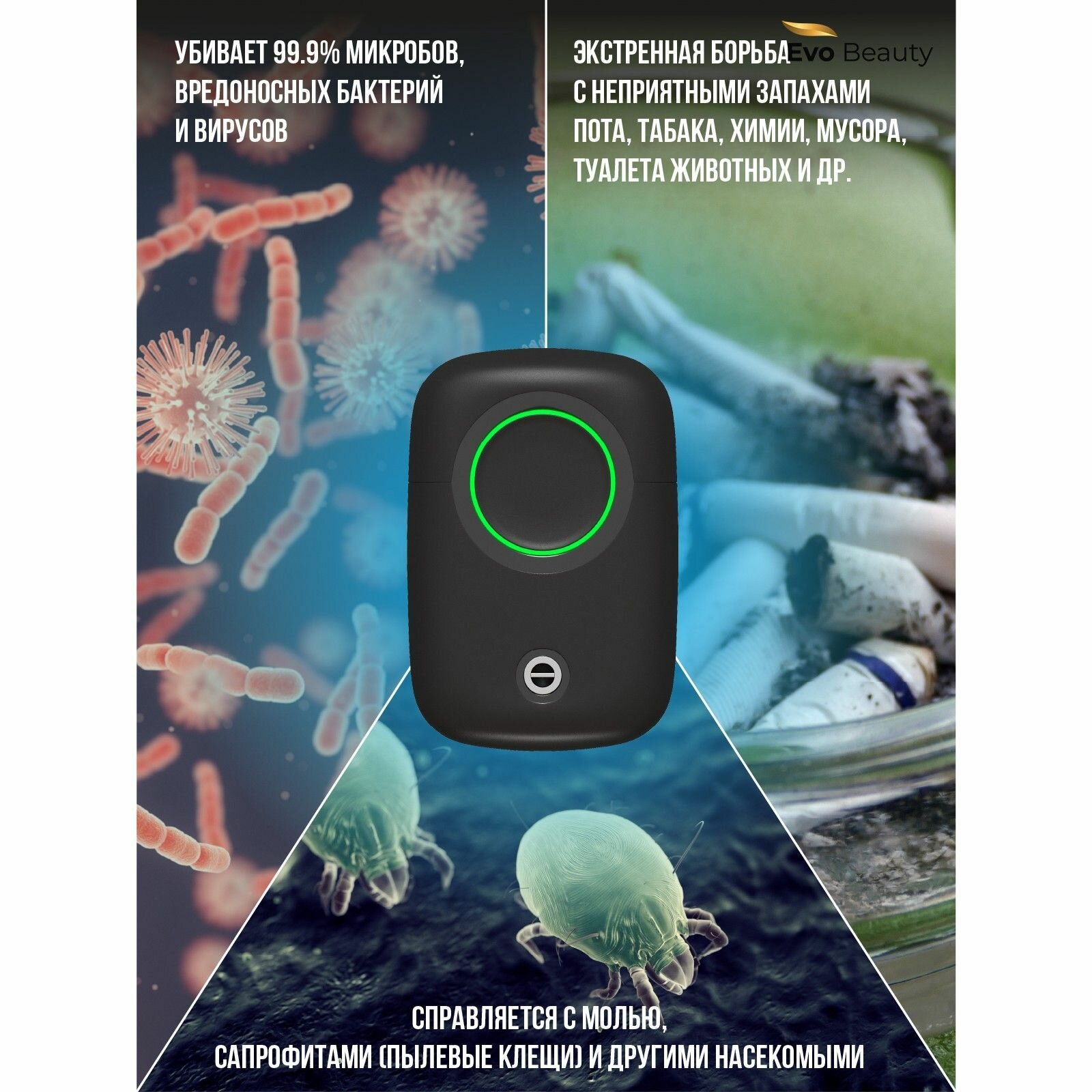 Озонатор-ионизатор для помещений Evo sante, очиститель воздуха с функцией дезинфекции воздуха,черный 4 990 ₽