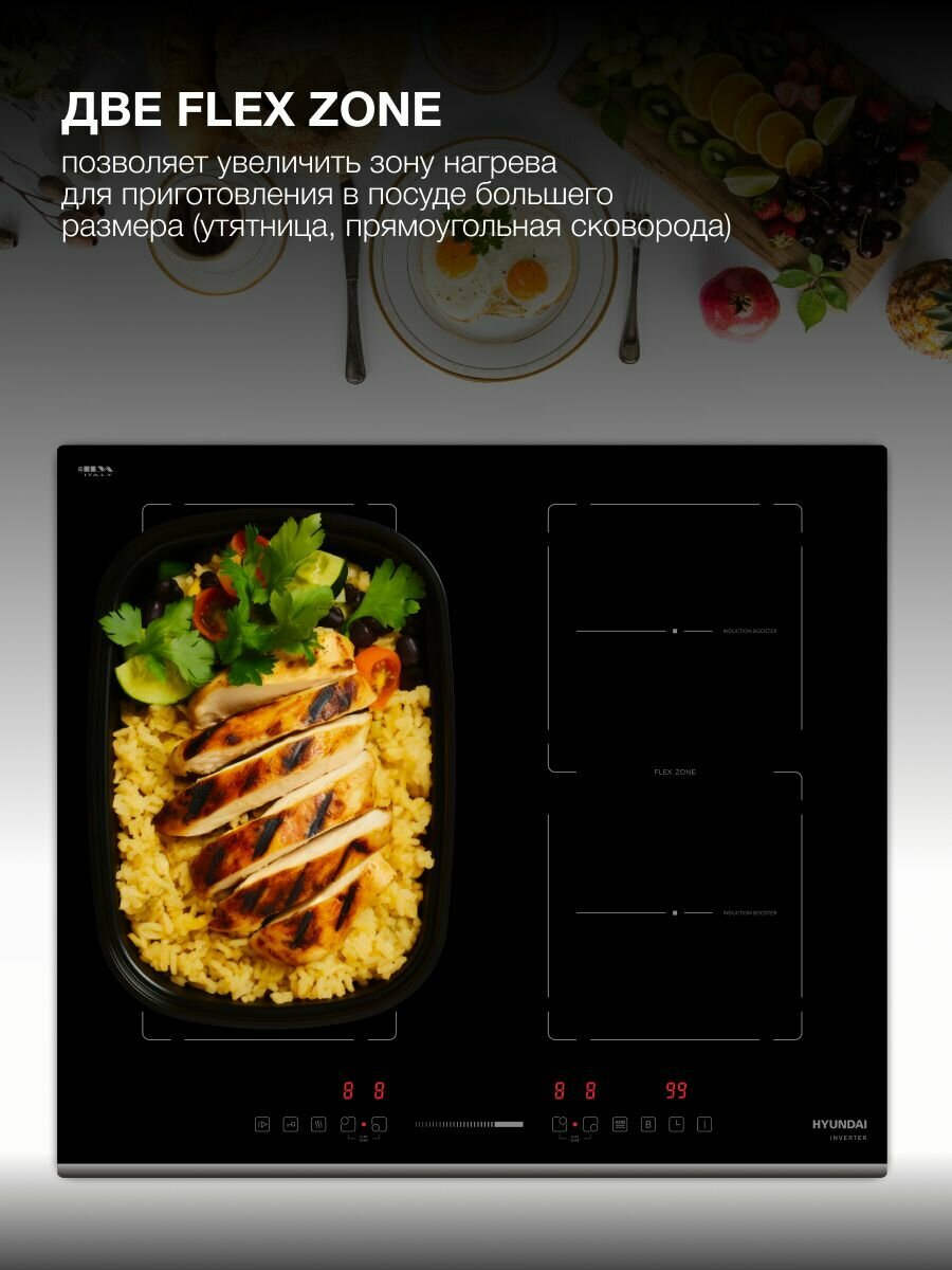 Индукционная варочная поверхность Hyundai HHI 6741 BG, Слайдерное управление, INVERTER, функция Автозакипания, функция поддержание тепла, таймер, пауза, скошенный передний край рамки черный 16 489 ₽