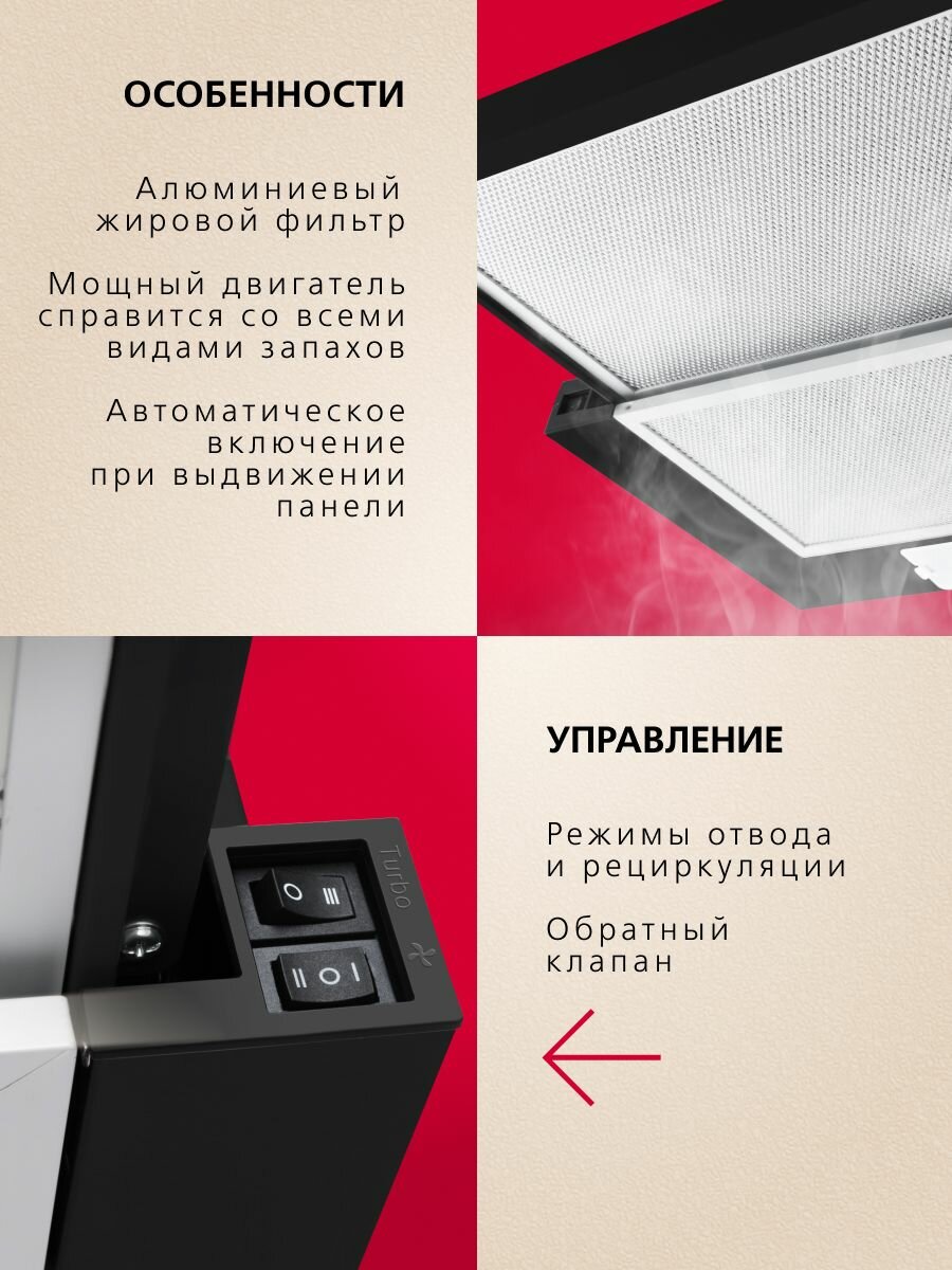 Телескопическая вытяжка Hansa OTP6233BH, 60 см, механическое управление, 3 скорости, режимы отвода и рециркуляции, светодиодная подсветка, черная информация: