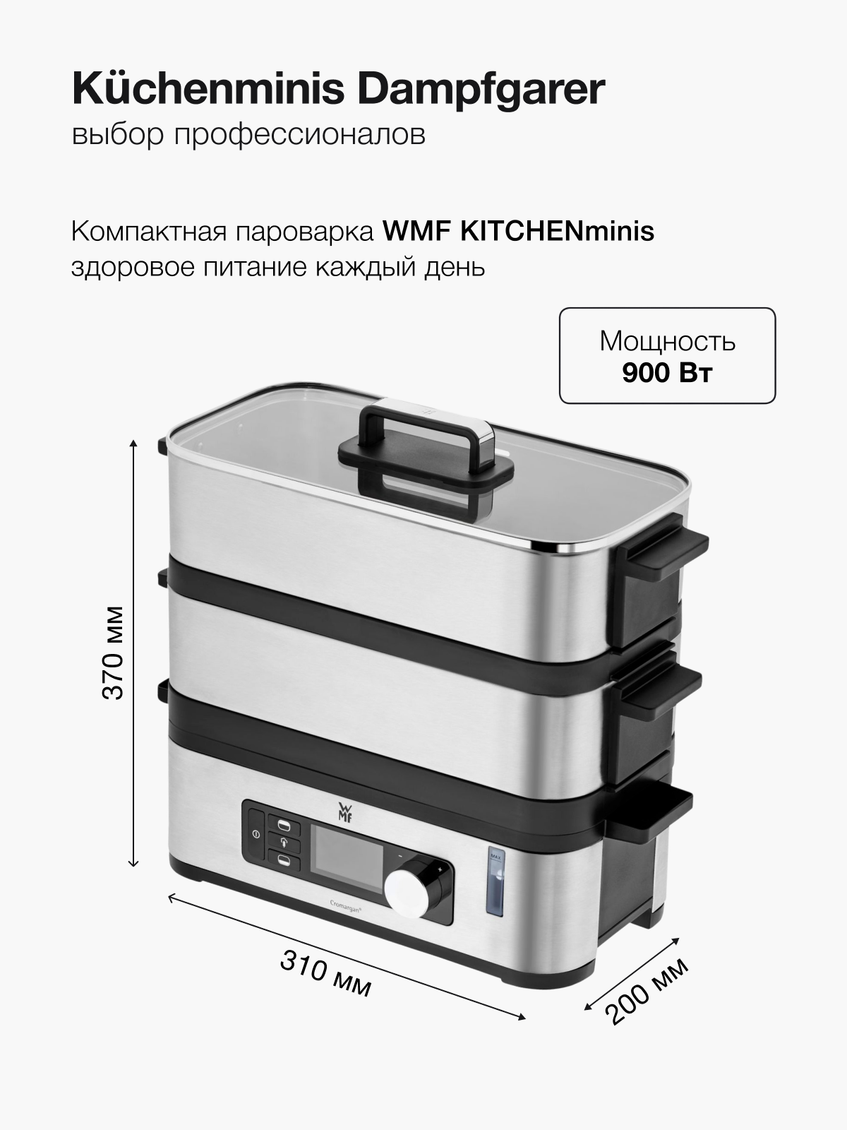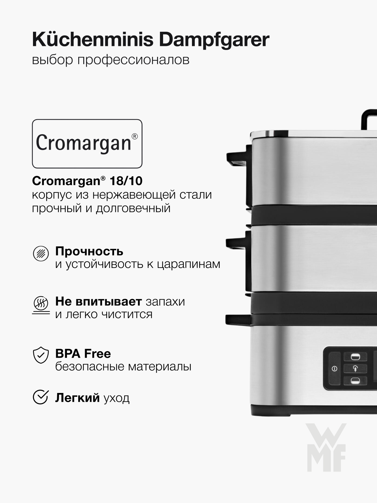 Характиристики этого товара не найдены!Отзывы на Электрическая пароварка из нержавеющей стали WMF KITCHENminis с двумя ярусами