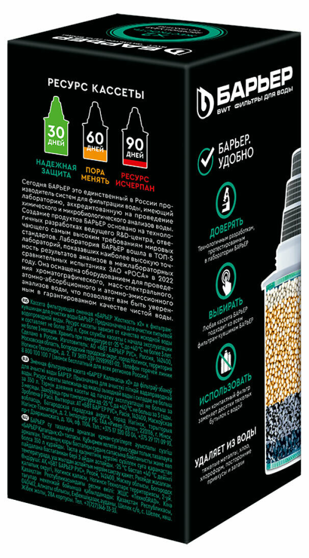 Кассета сменная к фильтру-кувшину для очистки воды «Барьер» Жесткость Х2 информация: