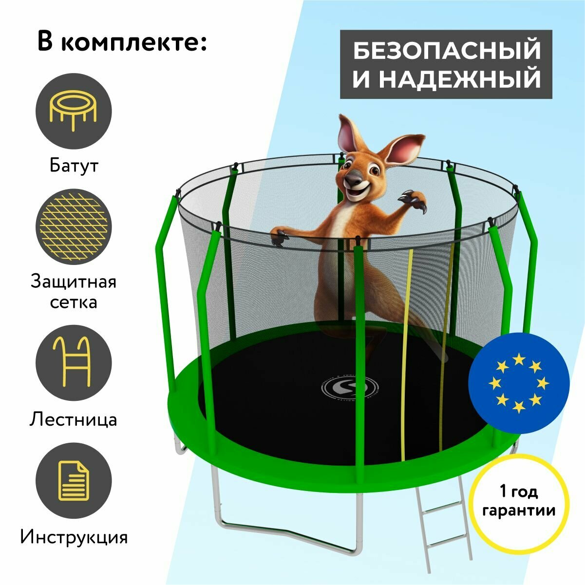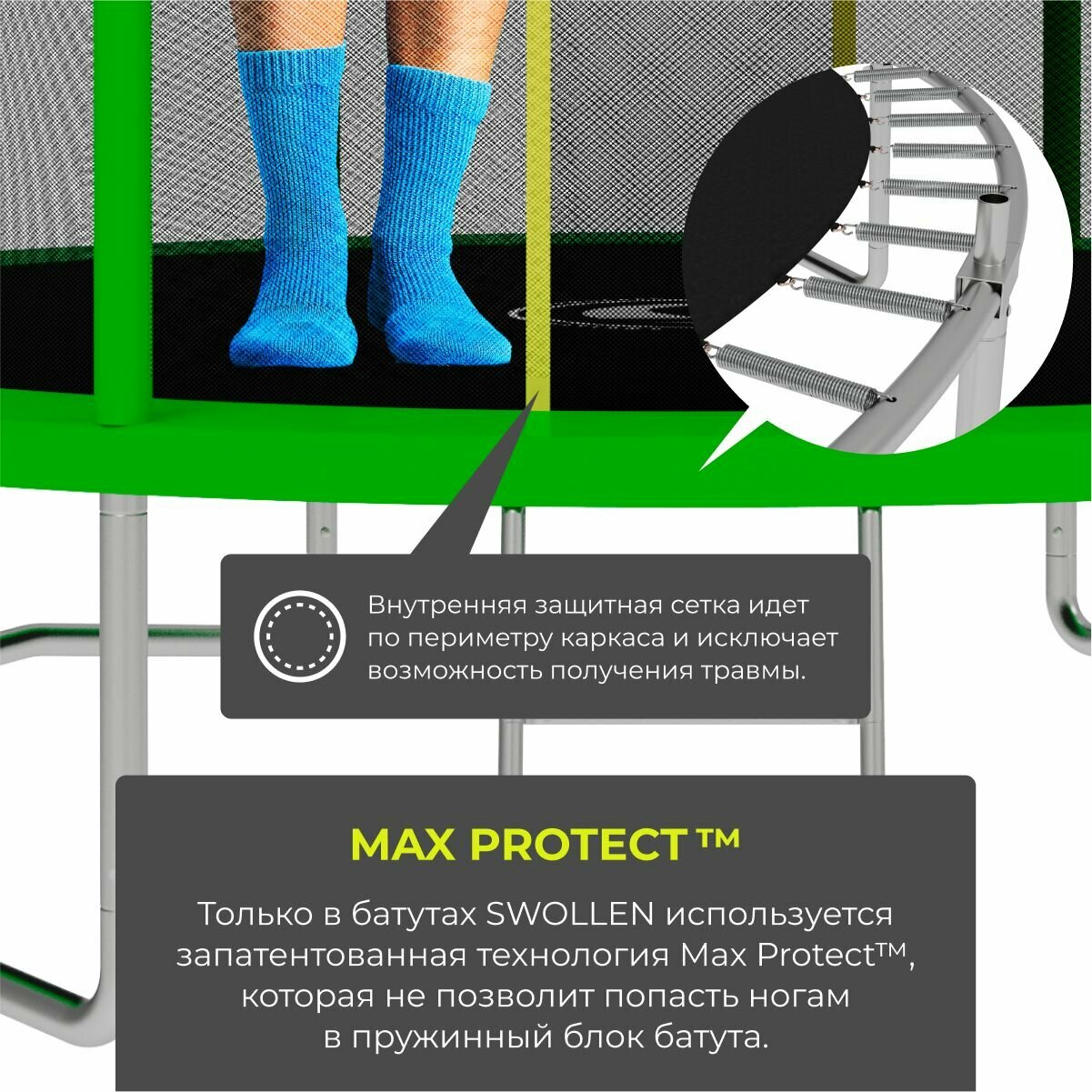 Батут с защитной сеткой SWOLLEN Comfort Overlap 10 FT (305 см) (Green) детский, для детей, уличный, для улицы, для дачи информация: