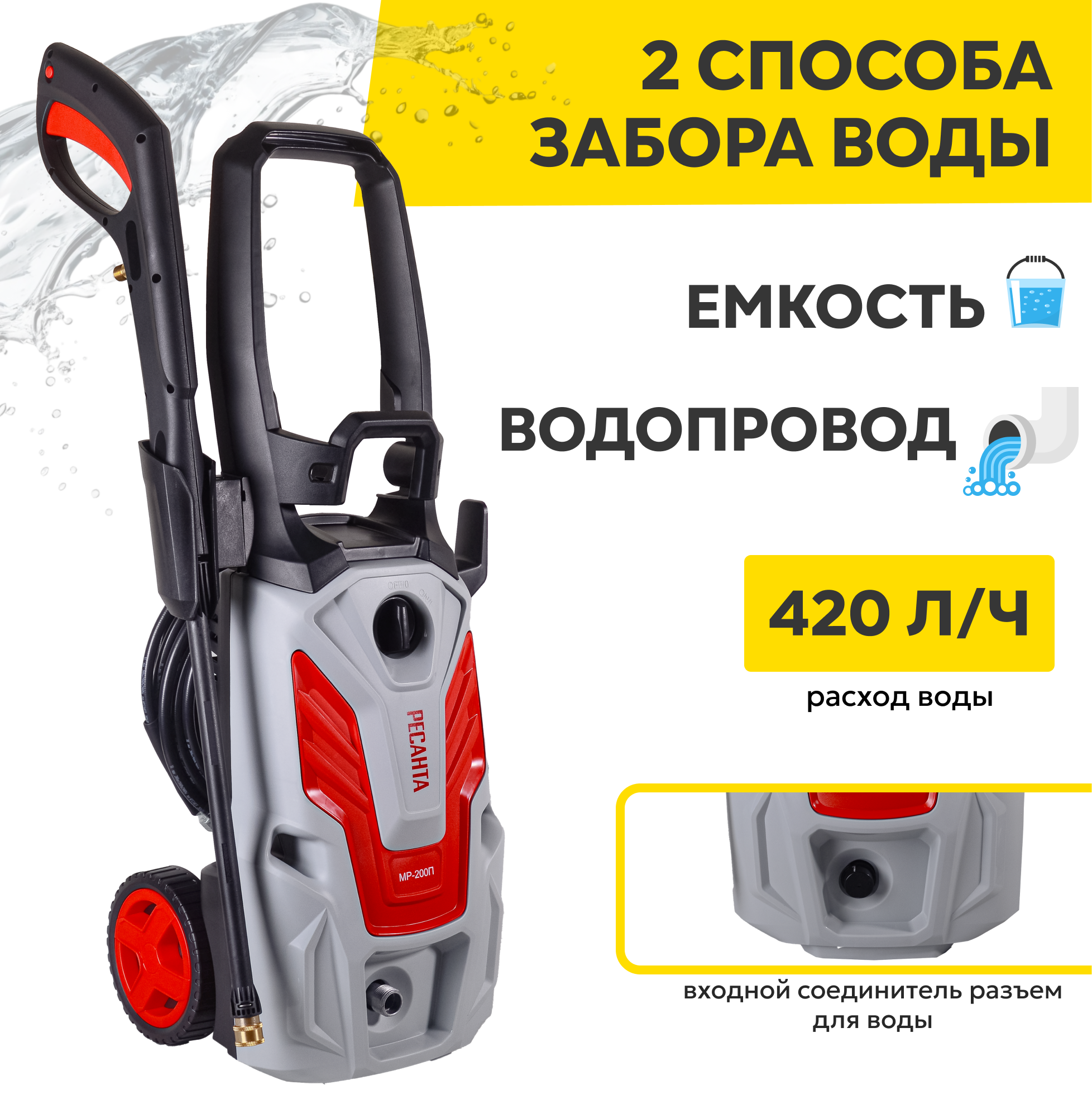 Отзывы на Мойка высокого давления РЕСАНТА МР-200П, 2500 Вт, 200 Бар, 420 л/ч, шланг – 8 м, проф. пеногенератор