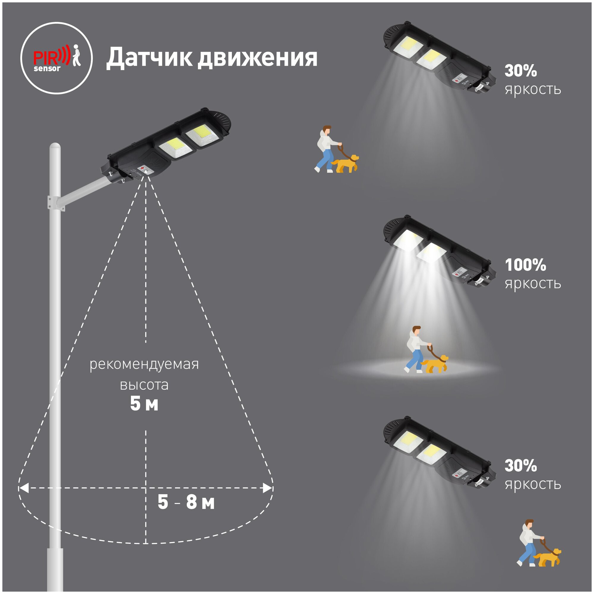 Светильник консольный на солн. бат. СОВ с кронштейном 40Вт 5000K 750Лм IP66 с датч. движ. ПДУ ЭРА информация: