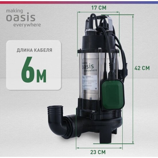 Насос фекальный Оasis FP 150/6, 400 Вт, напор 6 м, 150 л/мин