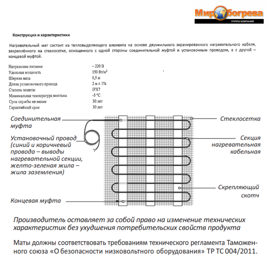 Теплый пол под плитку OrangeHeat MTE 1м2/150Вт