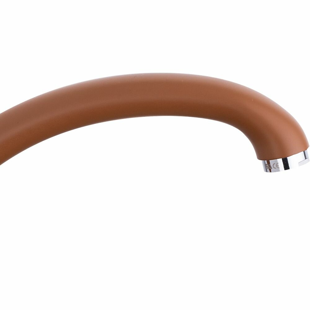 Высокий однорычажный смеситель для кухонной мойки с поворотным изливом на гайке Frap F4101-14 коричневый информация: