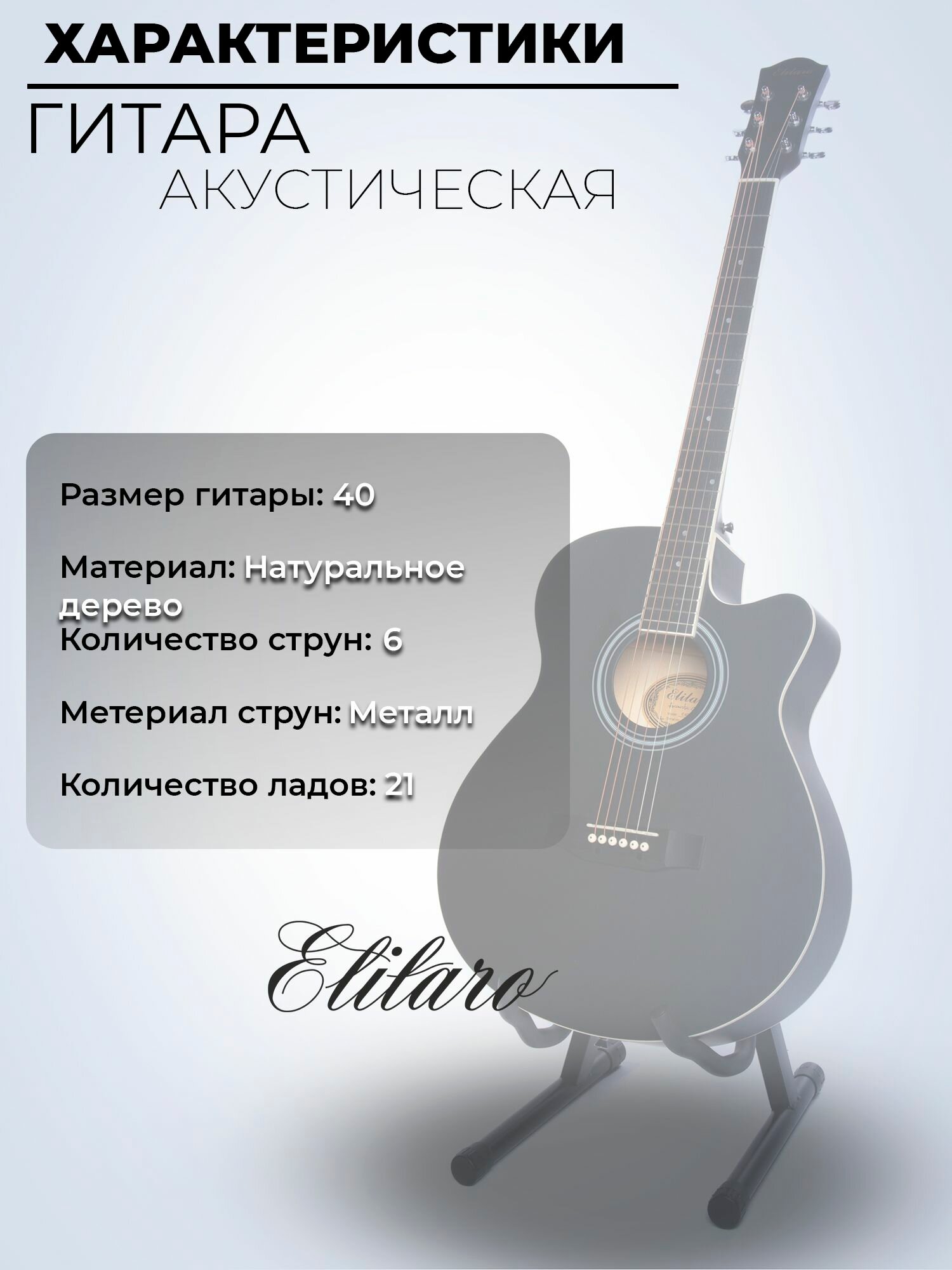 Отзывы на Гитара акустическая 40" Чёрная (Инструмент начинающего музыканта, Elitaro E4020 BK)